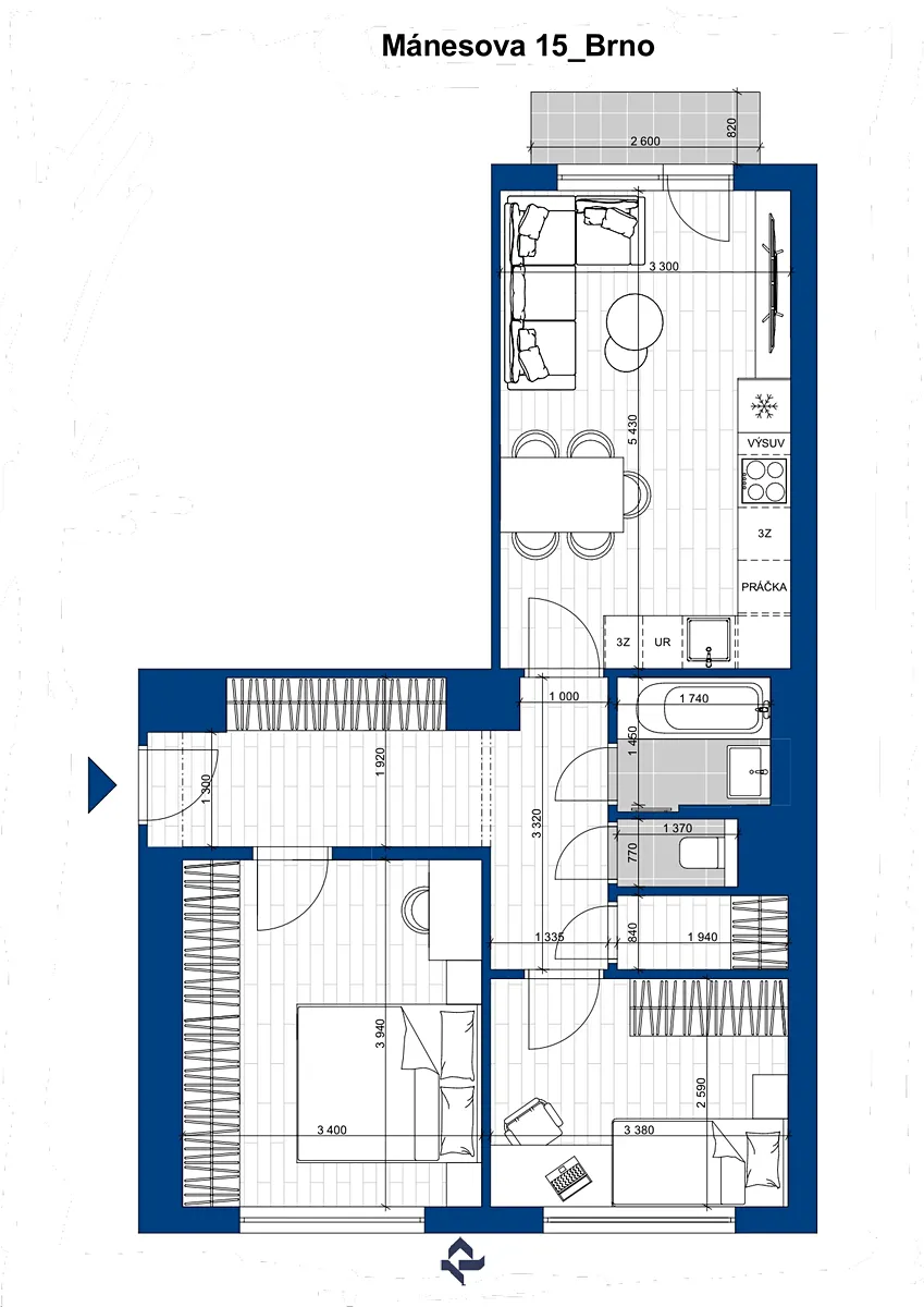 Nabízíme nový designový byt 3kk po kompletní nové rekonstrukci se sklepem a balkonem v cihlovém bytovém domě v nejžádanejší lokalitě Brna v městské části Karlovo Pole.