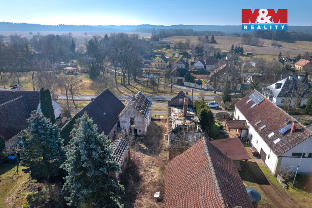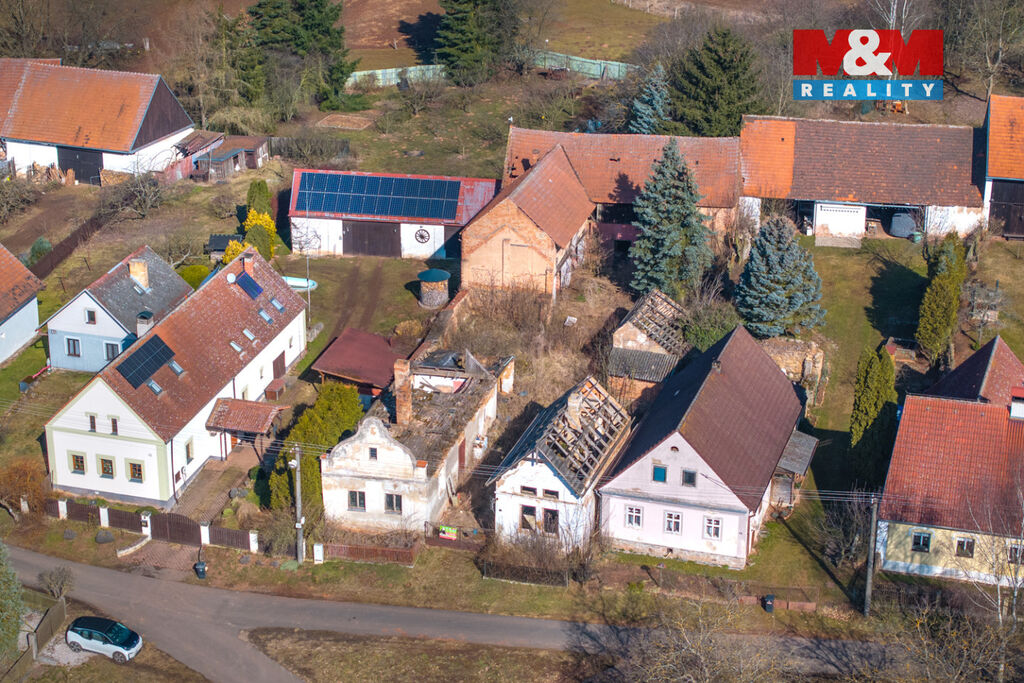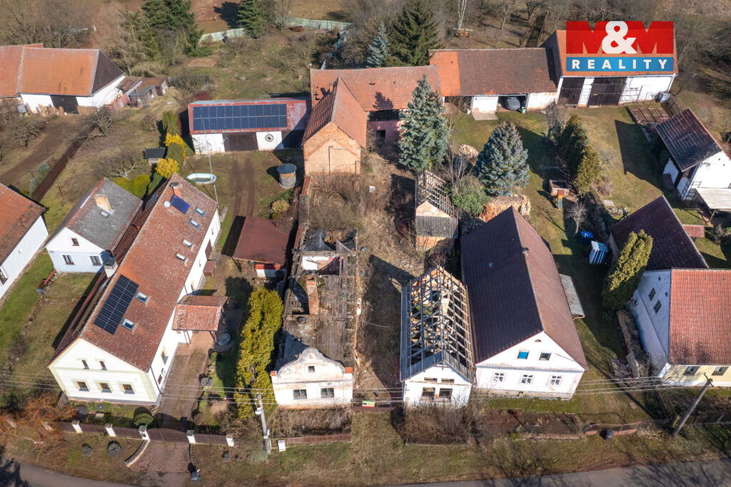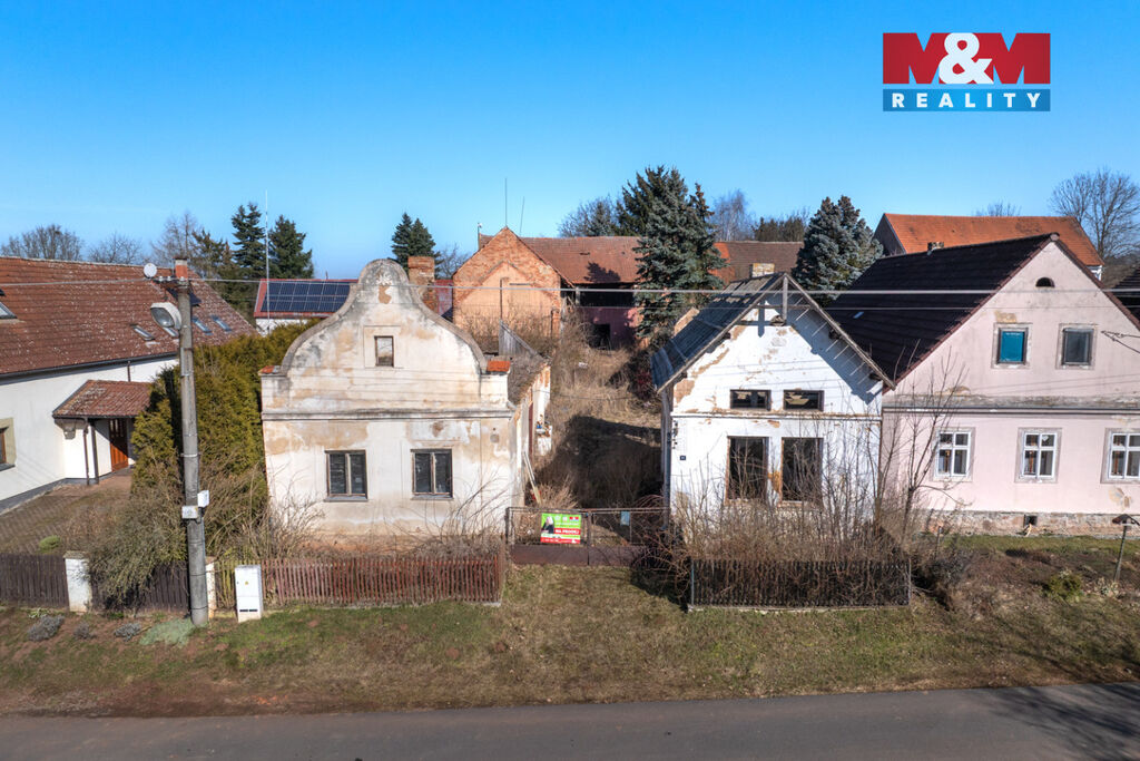 K prodeji je zde pozemek o velikosti 856 m2, na kterém stojí dva rodinné domy s dvěma čísly popisnými a velká stodola. Oba domy jsou ve špatném stavu a jsou tak určeny buď k celkové rekonstrukci anebo přímo k demolici. Demoliční výměry na oba domy a projektová dokumentace na nový dům jsou k dispozici.