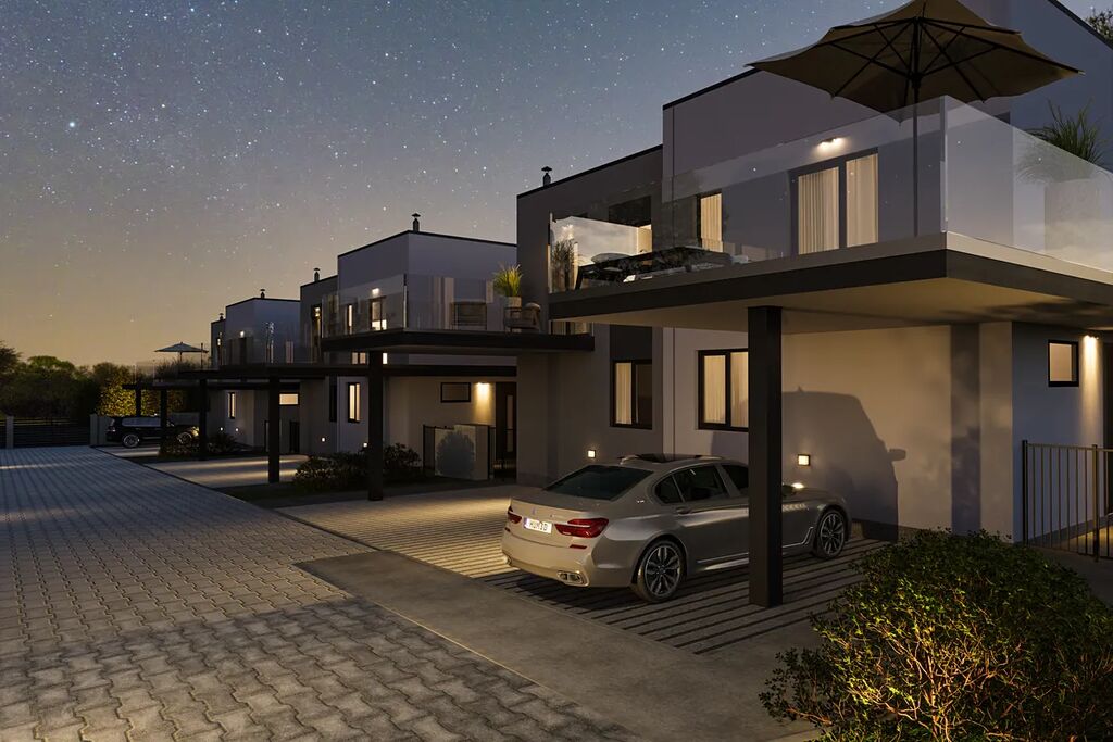 • Domy nejsou podsklepené, zastřešené plochou nepochozí střechou