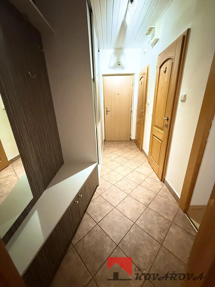 Dispozice bytu zahrnuje kuchyň, dva pokoje, koupelnu s vanou a samostatné WC. Součástí bytu jsou prostorné vestavěné skříně a zasklená lodžie, která nabízí možnost příjemného posezení. Vytápění je ústřední dálkové. K bytu náleží sklep, v domě je k dispozici kolárna.