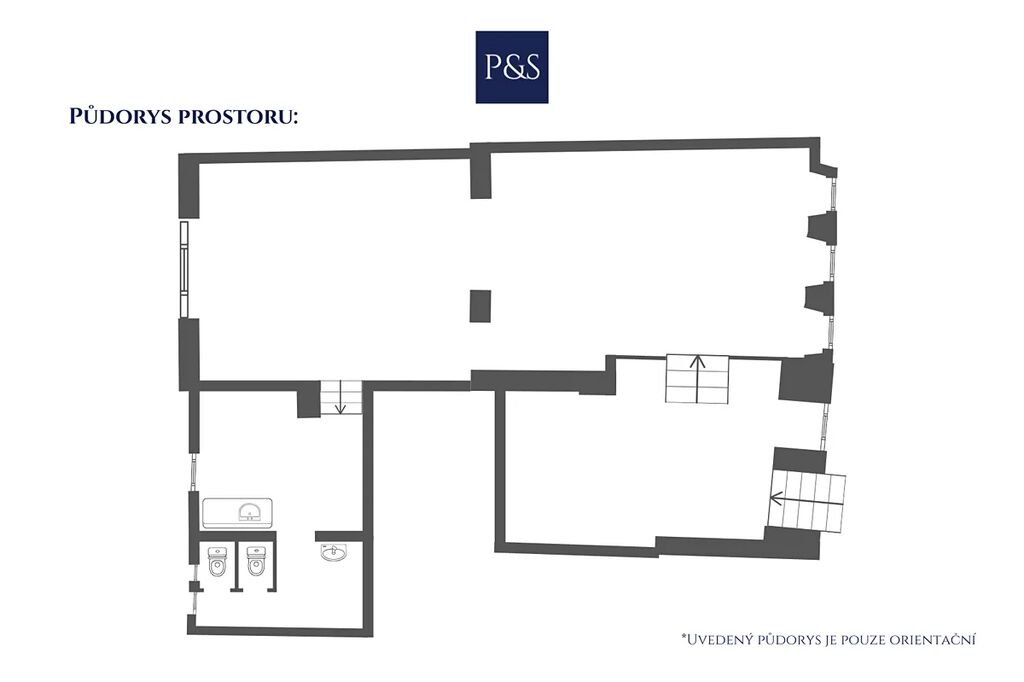 Dispozice nabízí velkorysý otevřený prostor, menší kuchyňku a sociální zázemí. Díky své variabilitě se prostory skvěle hodí pro kanceláře, showroom, designové studio, ateliér, galerii, obchod nebo provozovnu služeb.