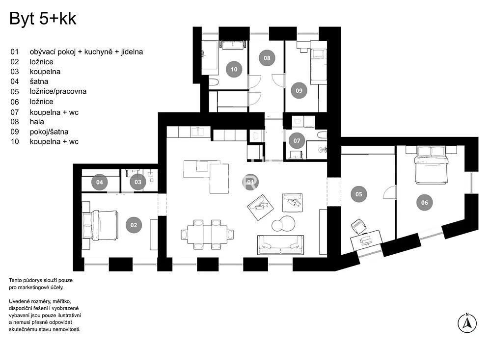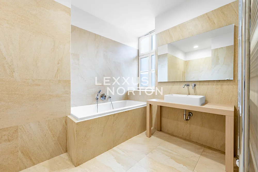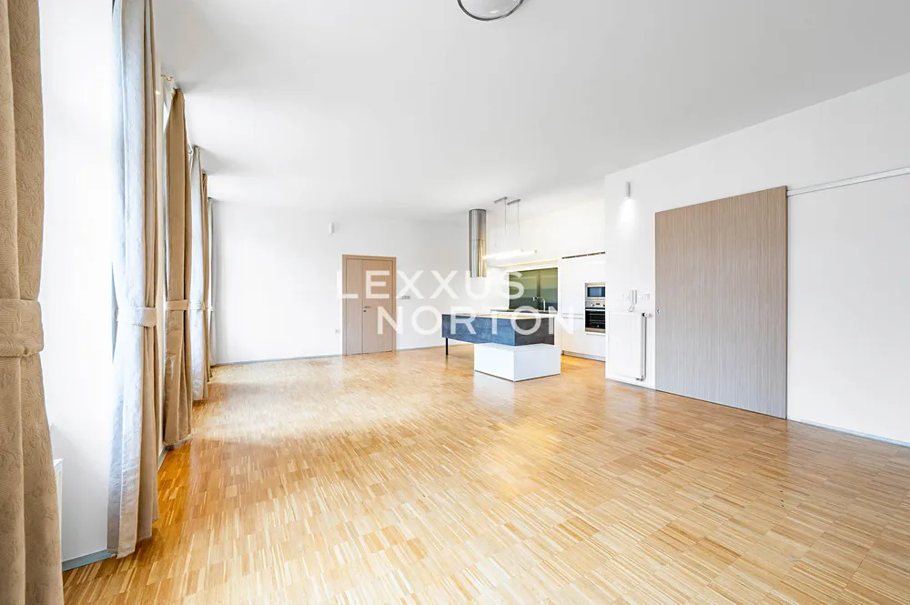 Nabízíme Vám světlý a vzdušný byt 5+kk o celkové ploše 145 m² ve 3. nadzemním podlaží historického cihlového domu jen pár kroků od Pražského hradu a Petřínských sadů. Tento exkluzivní nemovitost vás okouzlí svými výhledy i neopakovatelnou atmosférou jedné z nejprestižnějších lokalit v Praze. Dispozice bytu je velmi praktická. Prostorný obývací pokoj s jižní orientací plynule navazuje na nadčasovou kuchyni na míru značky Hanák. Hlavní ložnice disponuje vlastní šatnou a koupelnou se sprchovým koutem. Dvě průchozí ložnice, oddělené moderními skleněnými posuvnými dveřmi, lze využít jako dětské pokoje, pracovnu či pokoj pro hosty. Byt doplňují další dvě koupelny (jedna s vanou, druhá se sprchou a WC) a prostorná vstupní hala.