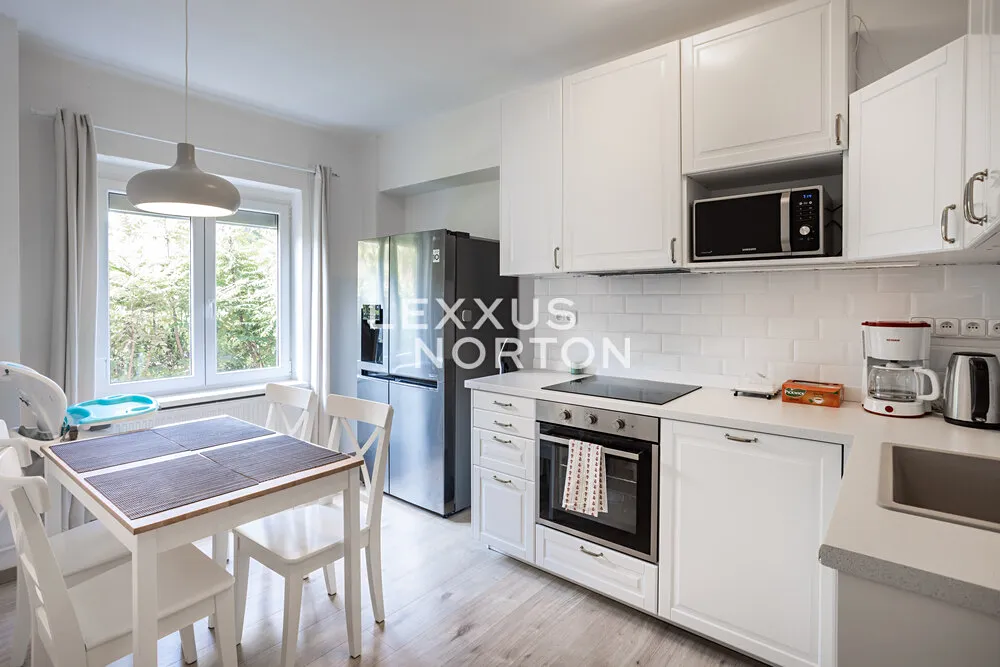 Kuchyně je vybavena sklokeramickou varnou deskou, troubou, americkou lednicí s mrazákem a myčkou nádobí, takže nabízí vše potřebné pro pohodlné vaření. V koupelně se nachází sprchový kout a kombinovaná pračka se sušičkou. Ložnice disponuje manželskou postelí, patrovou postelí a volně stojícím věšákem na oblečení. Vstupní chodba je zařízena prostornou skříní s dostatkem úložného prostoru.