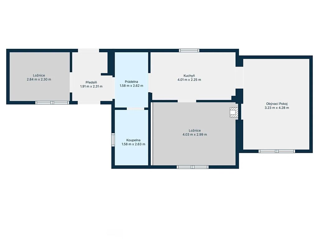 Současná dispozice domu nabízí dvě obytné místnosti, kuchyň, koupelnu a technické zázemí, přičemž je napojen na elektřinu, obecní vodovod a kanalizaci.