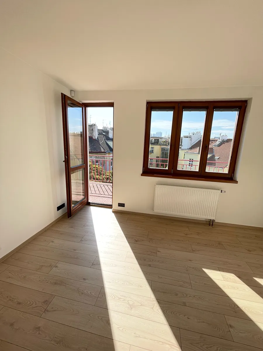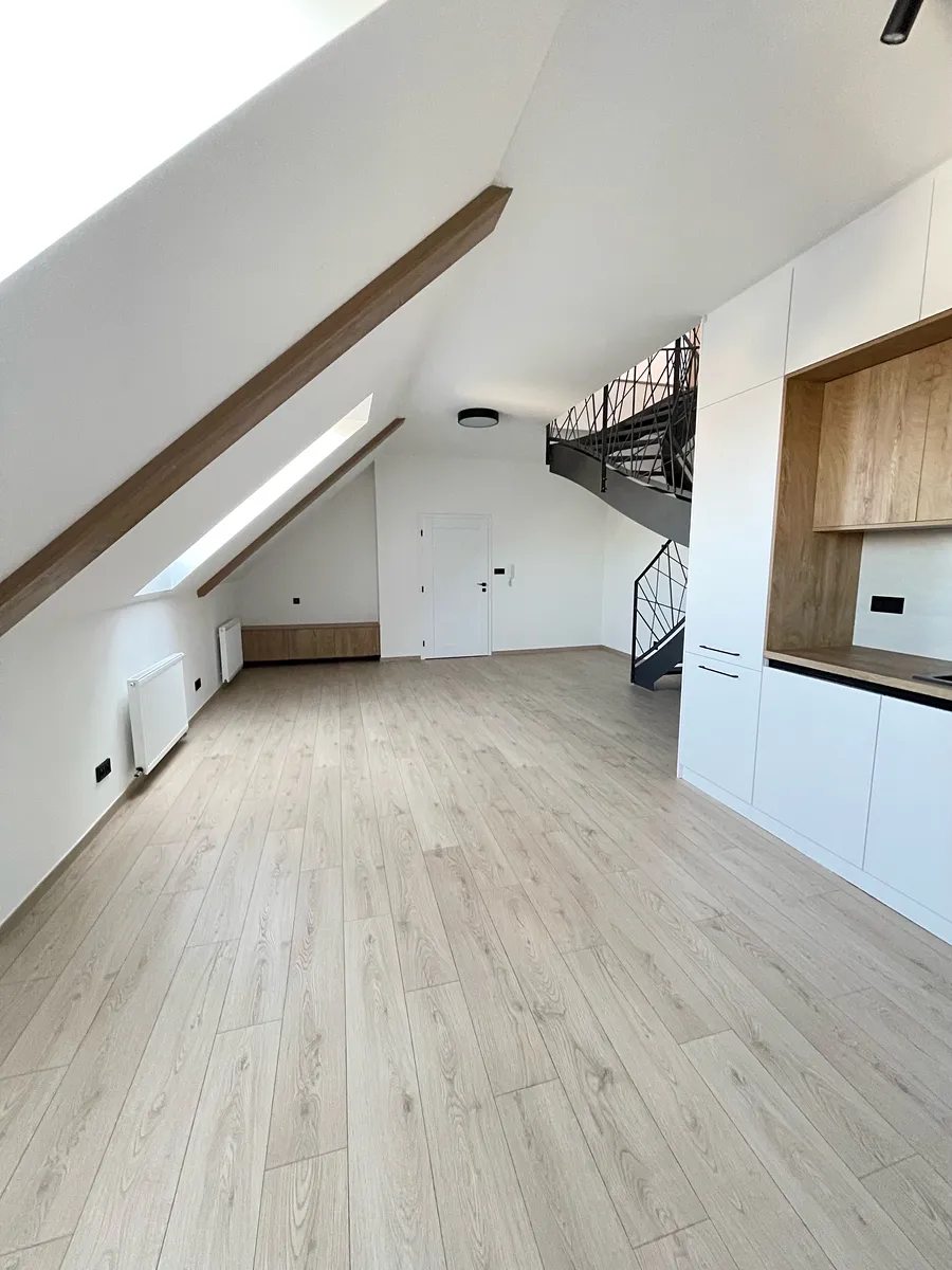 Zkuste něco nového. Dovolujeme si Vám k pronájmu nabídnout atypické, luxusní bydlení v mezonetovém bytě 4+kk, 128 m2 + terasa 20 m2, po kompletní rekonstrukci. Vše je zcela nové, vkusné, nepoužívané. Byt se nachází v 5. patře šesti podlažního domu s výtahem. Přes předsíň se vstupuje do prostorného pokoje se schodištěm a plně zařízenou kuchyňskou linkou ( indukční varná deska, elektrická trouba, lednice s mrazákem, pračka ). V prostoru je dostatek místa pro jídelní a obývací část. Dále je ve spodní části umístěna samostatná toaleta s umyvadlem do které je vstup z předsíně.