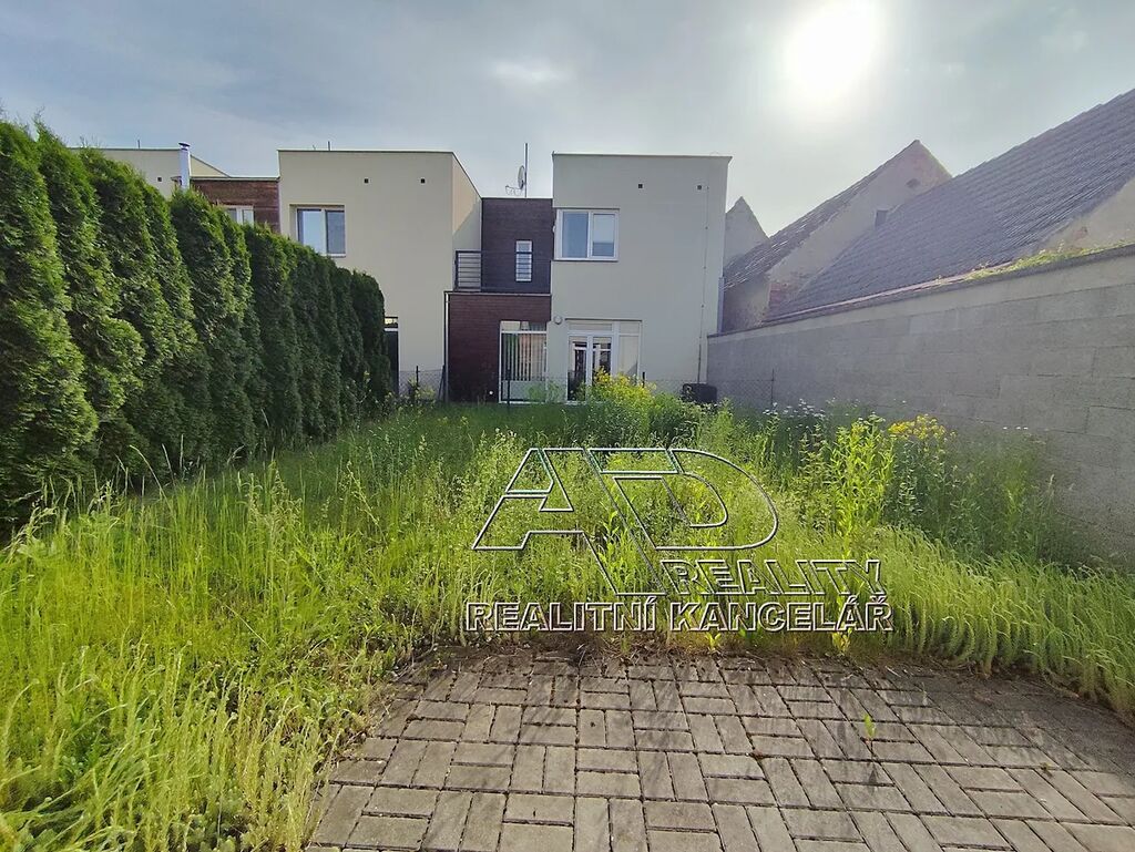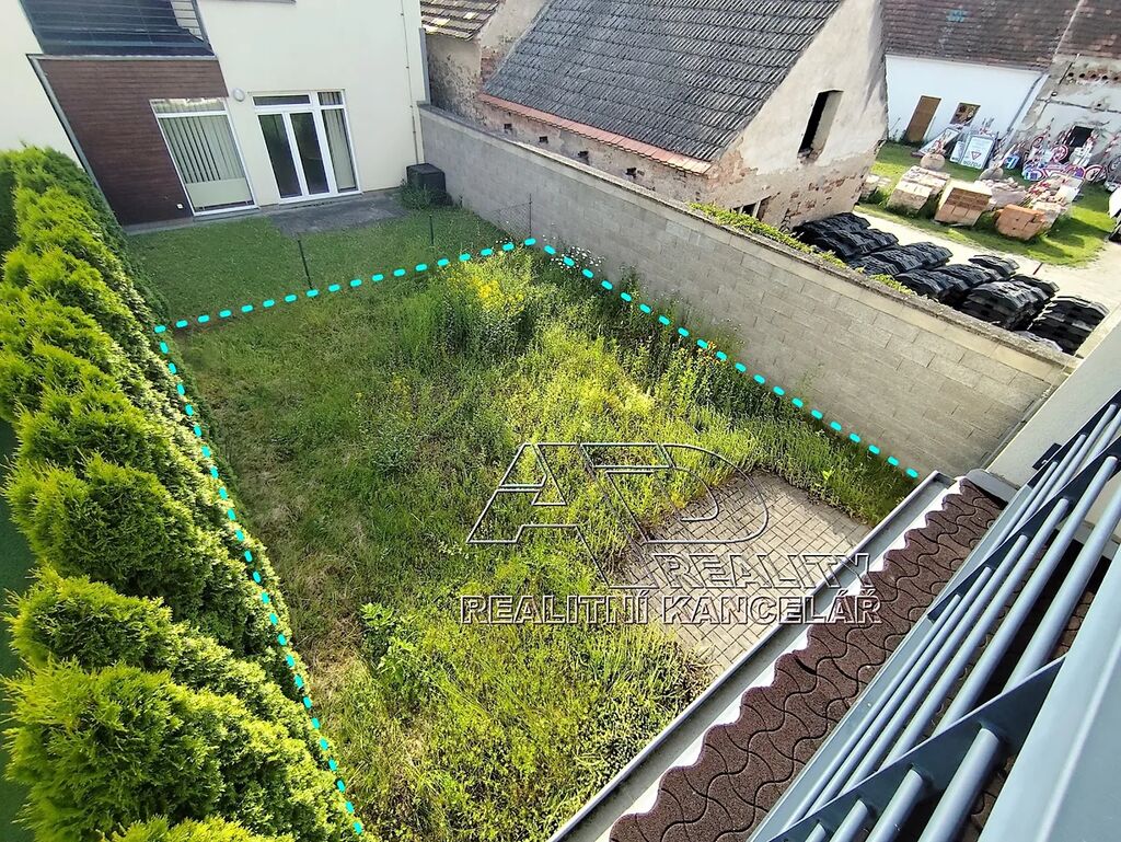 Zastavěná plocha celkem [83m2], nezastavěné plochy [87m2], pozemky (podle KN) celkem [170m2]. Stavba je umístěna na pozemcích obdélníkového tvaru o rozměru cca 7,3m x 23,5m o celkové výměře [170m2] včetně zastavěné plochy. Zahrada (nezastavěné pozemky) za domem jsou zatravněné, oplocené. K domu patří zatravněná předzahrádka [22m2] ze které je vstup do domu.