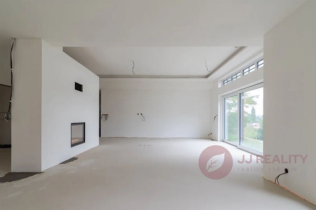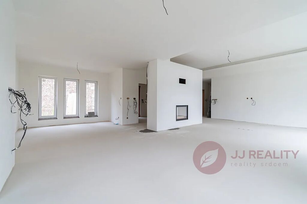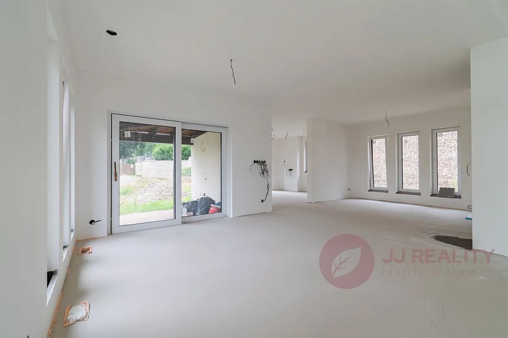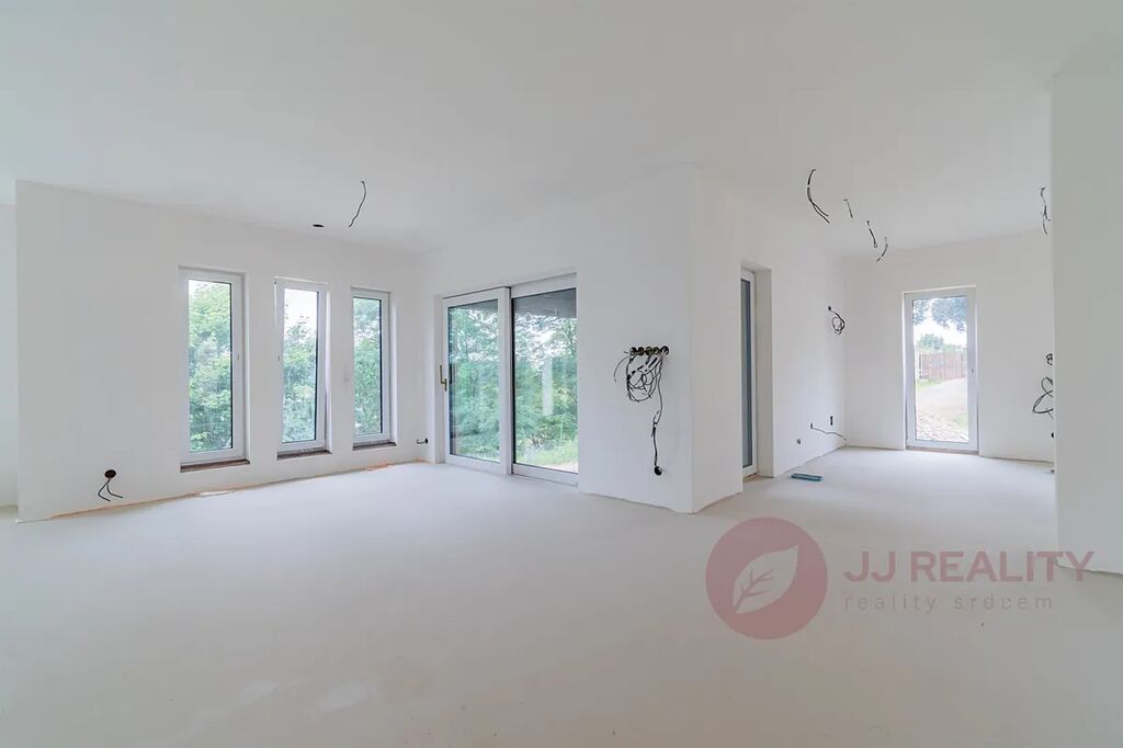 Tento nádherný prosvětlený dům je dispozičně velmi dobře řešený a nabízí komfortní prostorné bydlení, ideální pro vaši rodinu. Při vstupu projdeme chodbou, která nás zavede do srdce tohoto nízkoenergetického domu – obývacího prostoru s kuchyňským koutem. Tento prostor je dokonale prosvětlený a nabízí dostatek místa pro rodinné chvíle i sluneční paprsky, jeho plocha je s kuchyňským koutem 86m2 a uprostřed stěny, která odděluje otevřený a vzdušný prostor najdeme krb.