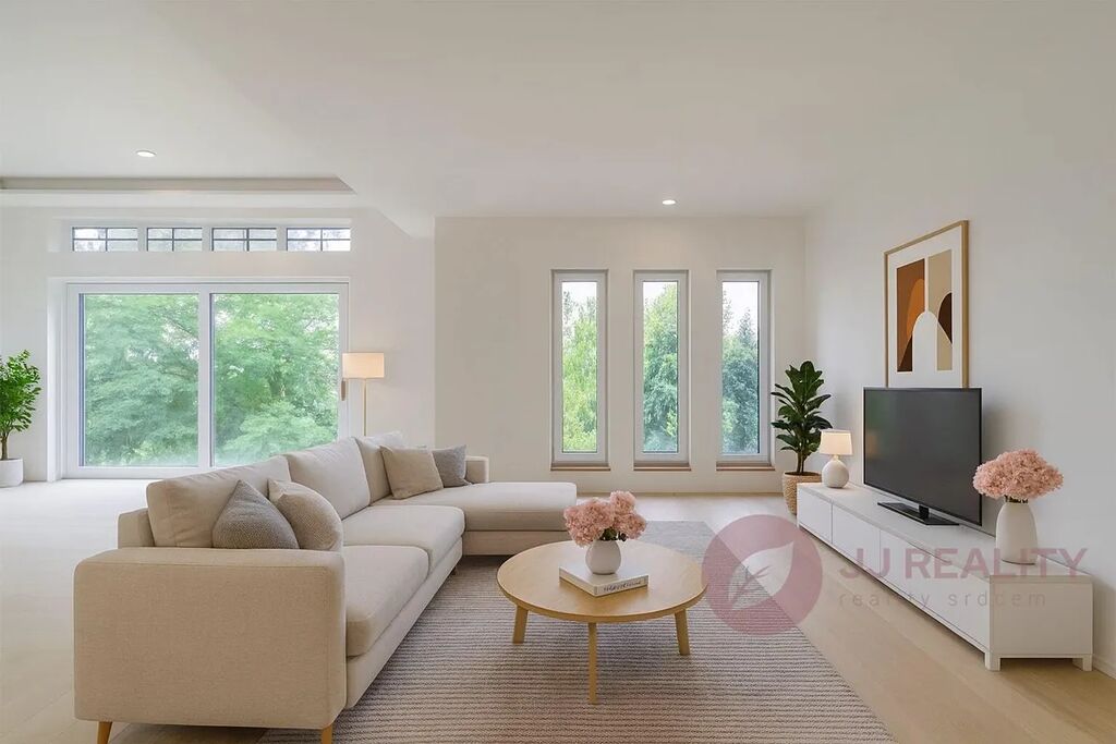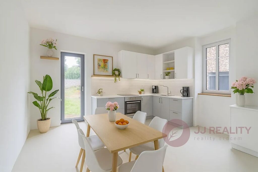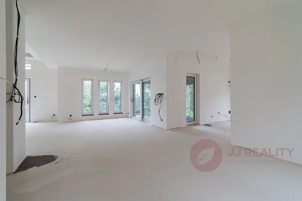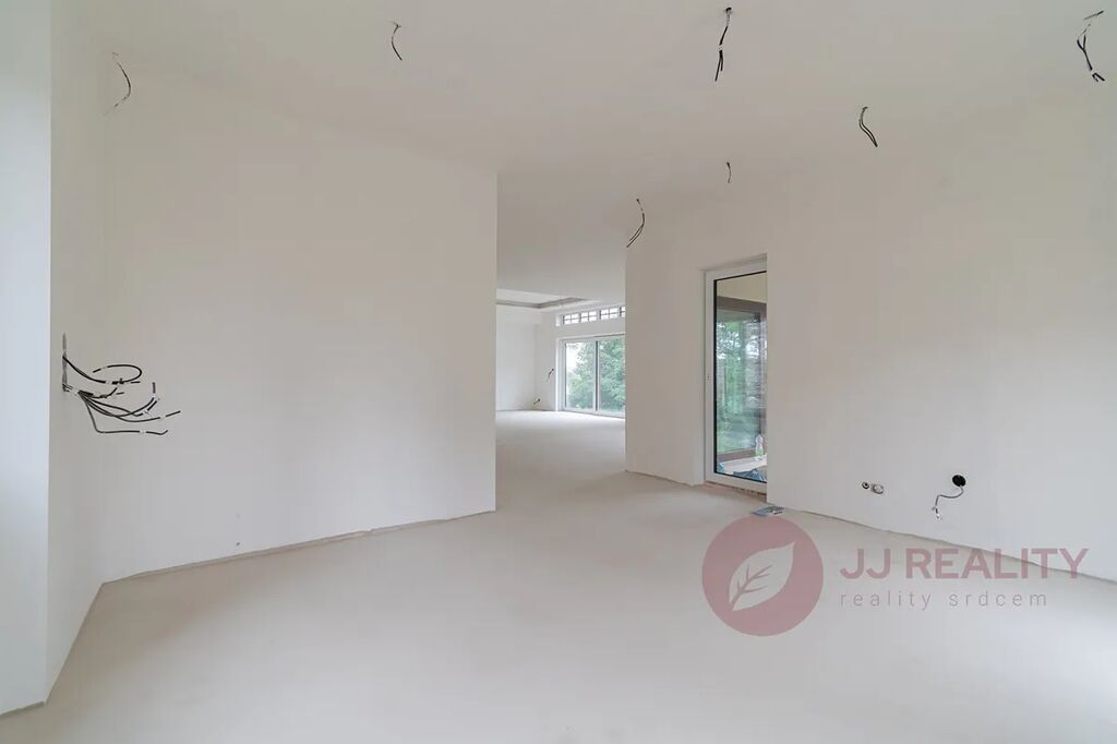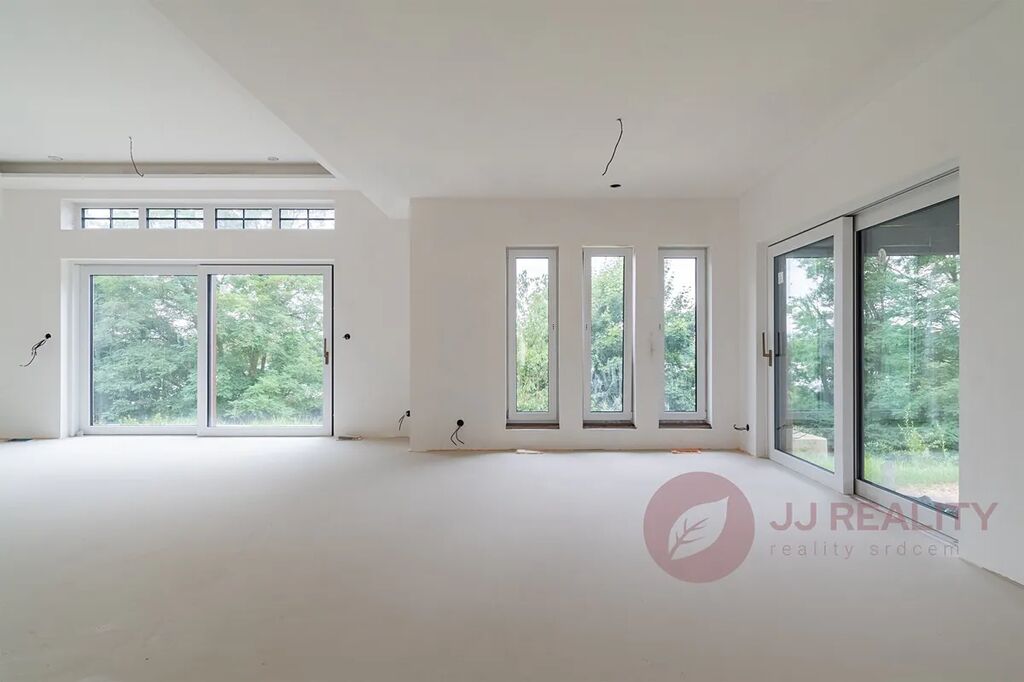 Tento nádherný prosvětlený dům je dispozičně velmi dobře řešený a nabízí komfortní prostorné bydlení, ideální pro vaši rodinu. Při vstupu projdeme chodbou, která nás zavede do srdce tohoto nízkoenergetického domu – obývacího prostoru s kuchyňským koutem. Tento prostor je dokonale prosvětlený a nabízí dostatek místa pro rodinné chvíle i sluneční paprsky, jeho plocha je s kuchyňským koutem 86m2 a uprostřed stěny, která odděluje otevřený a vzdušný prostor najdeme krb.