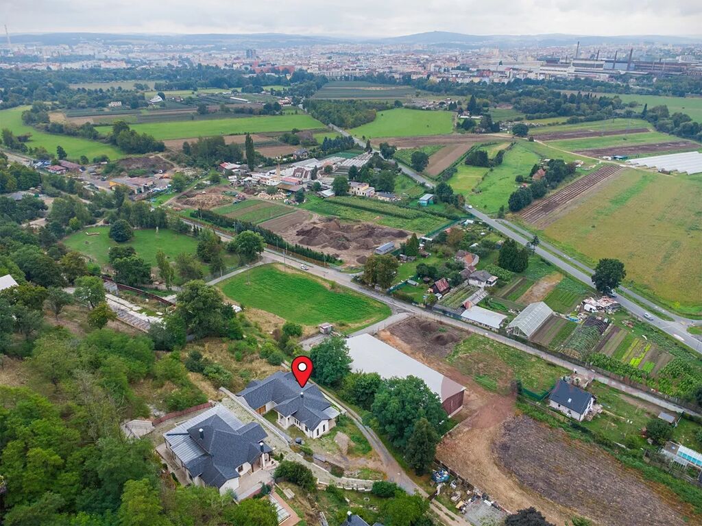 Celý dům je postaven na rovinatém pozemku s výhledem na Plzeň, a to v krásné lokalitě nad ZOO Plzeň. Na jedné straně pozemku najdeme úchvatnou gabionovou zeď, která plní jak praktickou, tak estetickou funkci. Toto místo je opravdovým rájem klidu, přitom jen kousek od centra města.