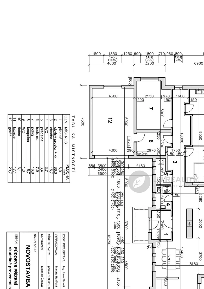 K domu náleží garáž o výměře 29 m², do které projdeme z technické místnosti. Dům je přízemní a z obývacího prostoru se dostaneme na krytou terasu, kde si můžete užívat klidné chvíle s rodinou.