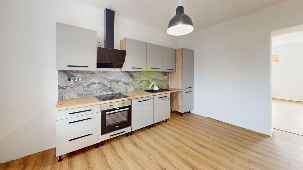 Dispozici bytu tvoří vstupní chodba, koupelna s rohovou vanou, samostatná toaleta, ložnice a obývací pokoj orientované na Jih do ulice, kuchyně se vstupem na balkon orientovaná na Sever do klidného vnitrobloku rodinných domů. Kuchyňská linka je vybavena varnou deskou, troubou a dřezem; s přípravou na myčku a místem pro pračku, lednice není součástí. Po domluvě je možné doplnit myčku nádobí s finanční participací nájemce.