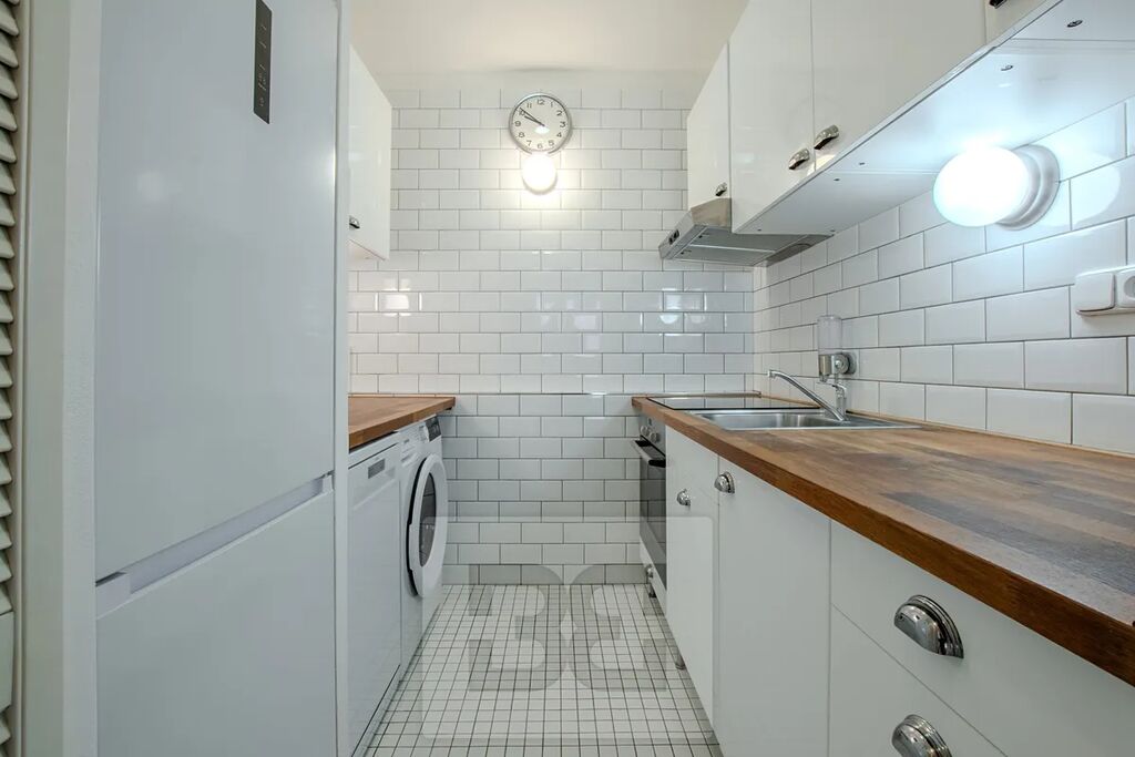 Byt je nabízen kompletně vybavený. Součástí je obývací pokoj propojený s kuchyňským koutem, který je vybaven kuchyňskou linkou se spotřebiči – myčka, trouba, mikrovlnná trouba, varná deska, digestoř, lednice s mrazákem a pračka. V obývací části je rozkládací pohovka, jídelní stůl a televizní stolek.
