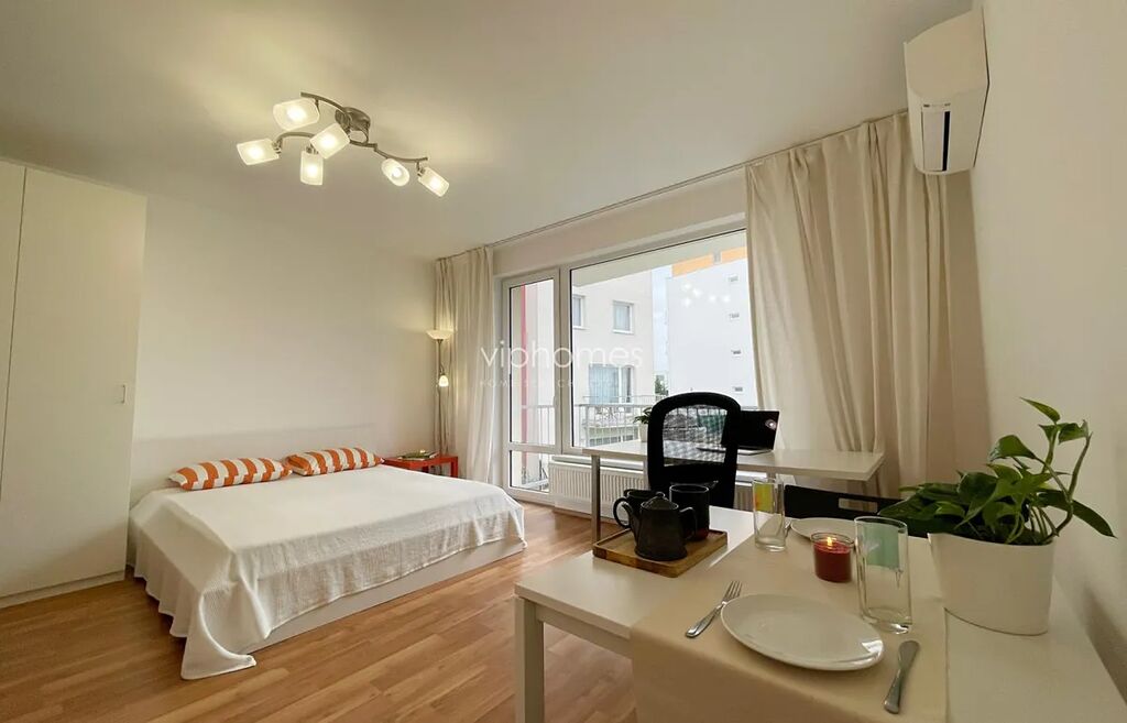 Prodej velmi pěkného bytu o dispozici 1+kk s balkonem, výtah. Výměra bytu-užitná plocha 29,8 m2- obývací pokoj 20,19 m2, balkon 4,68 m2, celkem 34,44 m2, umístěný ve 2.NP novostavby v lokalitě Praha 9-Černý Most.