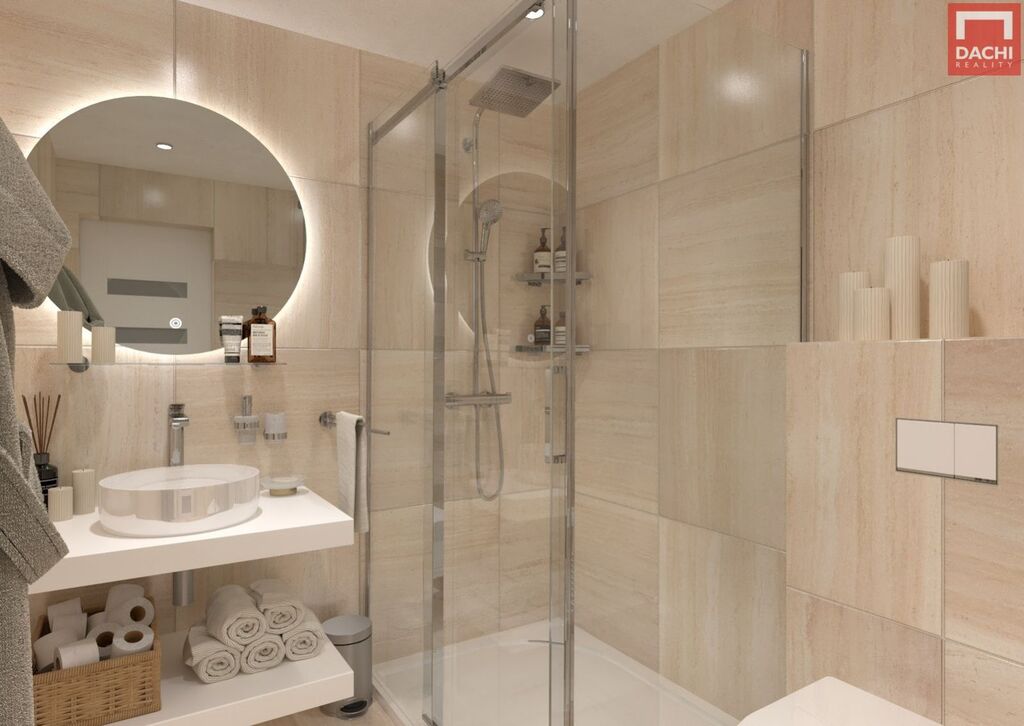 Byty jsou navrženy s důrazem na kvalitu, eleganci a funkčnost samozřejmostí jsou kvalitní podlahy, designové interiérové prvky a moderně vybavené koupelny.