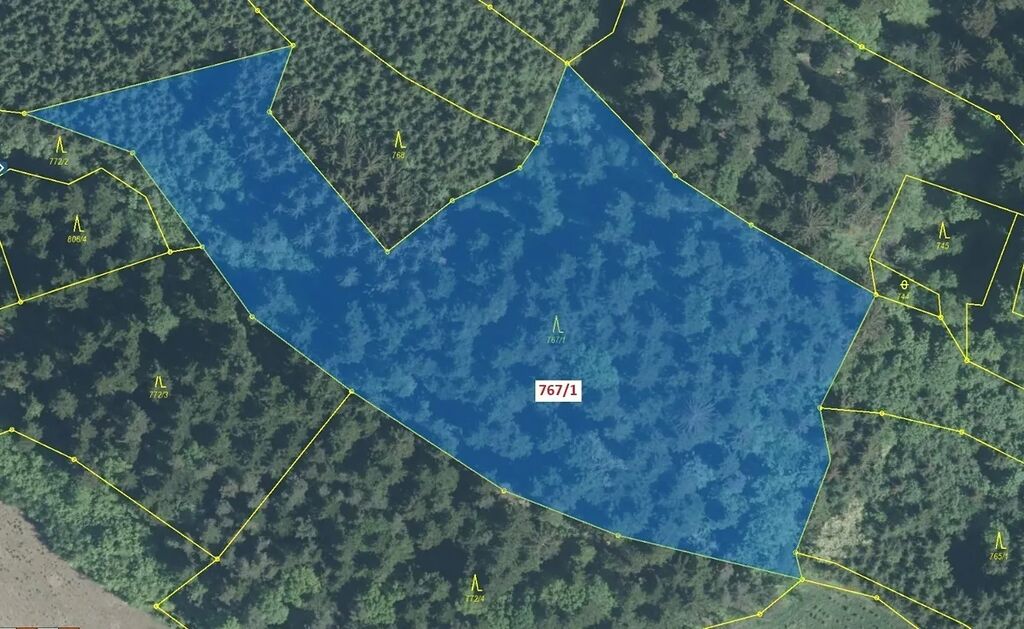 Lesní pozemek o výměře 12 637 m2, parcelní číslo 767/1, podíl 1/1, katastrální území Lačnov, obec Lačnov, obec s rozšířenou působností Vsetín, okres Vsetín, Zlínský kraj. Po těžbě.