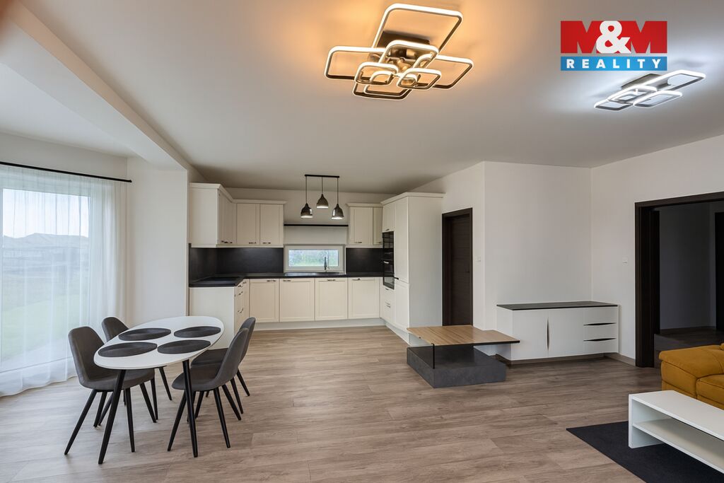 Nabízíme ke koupi moderní rodinný dům 4+kk o užitné ploše 110 m², nacházející se v klidné části Veselí nad Lužnicí, ulice Polní. Tento samostatně stojící dům byl dokončen v roce 202 a je ideální pro rodiny hledající komfortní bydlení v moderním stylu. Dům stojí na pozemku o celkové výměře 1 074 m², z toho zastavěná plocha činí 131 m² a zahrada 943 m².Interiér je navržen s důrazem na světlost a funkčnost, nabízí prostorný obývací pokoj s kuchyňským koutem a vstupem na terasu, tři ložnice, koupelnu s vanou i sprchovým koutem, samostatné WC a technickou místnost. Kuchyň je vybavena moderními spotřebiči a dostatkem úložného prostoru. Podlahy s dekorem dřeva dodávají interiéru útulnou atmosféru. Zahrada je připravena k dokončení dle vašich představ.