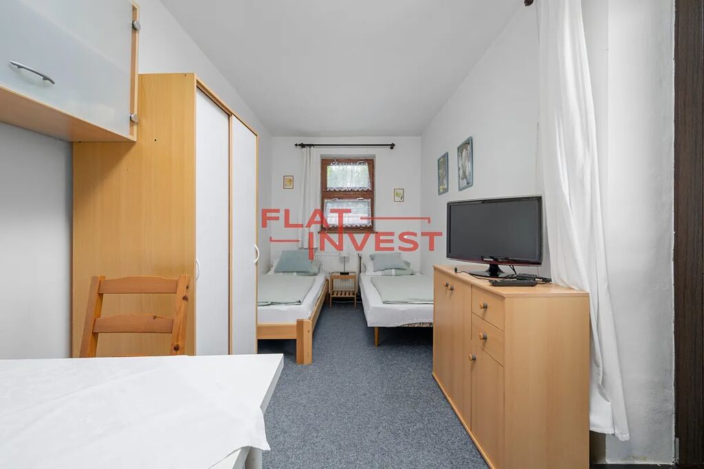 V přízemí nalezneme po vstupu do samostatné chodby obývací pokoj s kuchyní, koupelnu s toaletou a dále jeden samostatný pokoj s východem na zahradu která náleží k tomuto bytu. V patře potom jsou tři samostatné pokoje které v současné době slouží ke krátkodobému pronájmu.