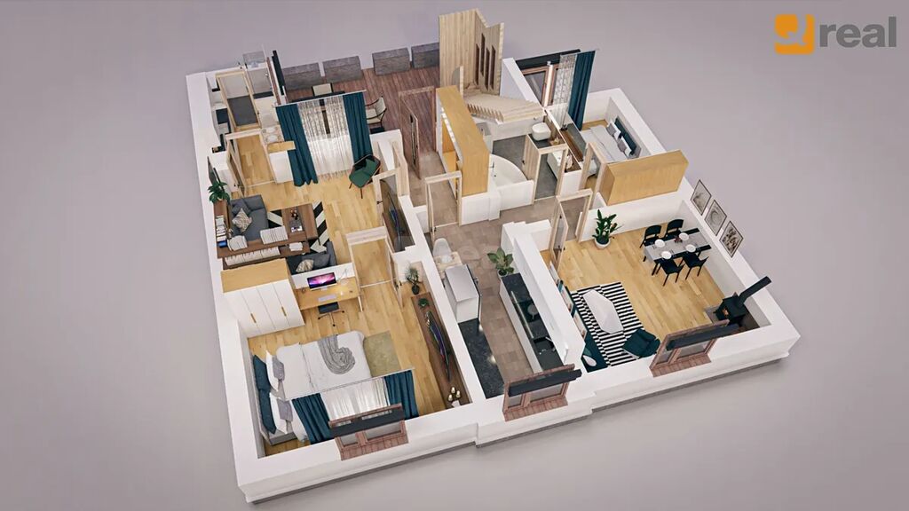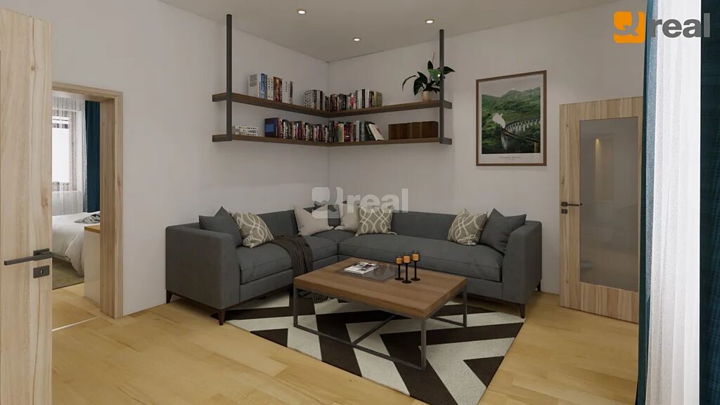 Přízemí je rozděleno na dva byty 2+1 se společnou prostornou verandou a přes tuto je pak vstup po schodech do podkroví o vel. 3+1 s balkonem a komorou. Lze zde vybudovat terasu se vstupem přímo z obývací části.