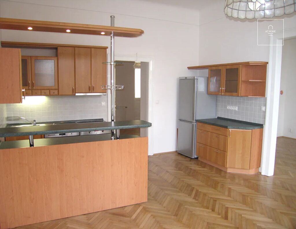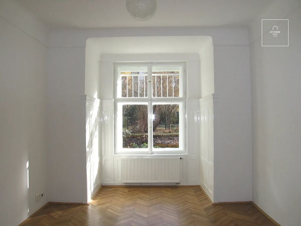Klasický vinohradský byt 4+kk, nezařízený, ve zvýšeném přízemí dobře udržovaného, secesního domu s výtahem. Hezké místo, klidná část Vinohrad, přímo naproti jeden z nejpopulárnějších pražských parků, Riegrovy sady. 111m2: hala se vstupem do všech místností, 2 ložnice na východ do zahrady, další ložnice a obývací pokoj s kuchyňským koutem na západ do ulice s výhledem do parku, koupelna s vanou, WC samostatně. Vybavení: plynový kotel, kuchyňská linka z masivu vybavená spotřebiči (bez ledničky) - sklokeramická varná deska, el.trouba, myčka, mikrovlnka. V koupelně pračka, bezpečnostní dveře s izolací, komora se šatnou, spíž. Na podlaze dubové parkety, rozvod kabelů internetu do všech místností. Vysoké stropy 3,4m. Byt je vhodný pro rodinu. K dispozici společná zahrada ve vnitrobloku. Tichá, klidná ulice, navzdory tomu do centra, na Václavské náměstí, pouze 10 min chůze. Veškerá občanská vybavenost v okolí. Školy a školky. Park a Sokolovna s bazénem naproti domu, doprava tramvaj 11 a 13, metro A v blízkosti. Parkování v ulici na modré zóně pro rezidenty. Nákup - supermarket Albert ve Vinohradském pavilonu. Energetický štítek G. Nájem 35.000,-Kč + služby cca 3500,- Kč + převod elektřina a plyn. Byt volný od prosince.