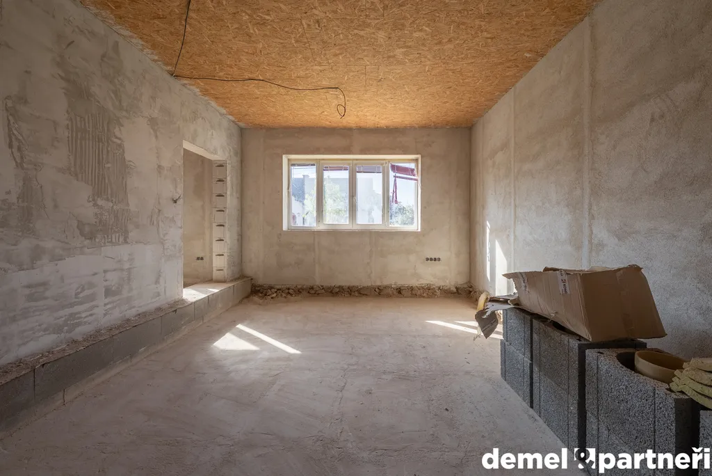 Tenhle rodinný dům stojí na pozemku 648 m² a teď má dispozici 3+1, ale tím to rozhodně nekončí – nahoře je velká půda, kde si můžeš v klidu udělat další pokoje. Takže celý patro navíc podle sebe. Okolo domu na tebe čeká rovná zahrada s výměrou 545 m². Ideální na posezení, bazén nebo cokoliv tě napadne. K tomu tu máš i pár přilehlých staveb (nejsou zapsané v katastru) a to včetně garáže. Dům je jednopodlažní s možností obytného podkroví a částečně podsklepený. Teď je v rozjetý rekonstrukci. To nejtěžší už je za tebou. Vybouráno, připravený hrubý rozvody elektřiny a vody, v části domu už i omítky. Takže teď přichází ta zábavnější část – dodělat si to podle sebe a dotáhnout to do finální podoby přesně tak, jak chceš ty a nebo prostě celé znova. Ale to je už jenom na tobě.