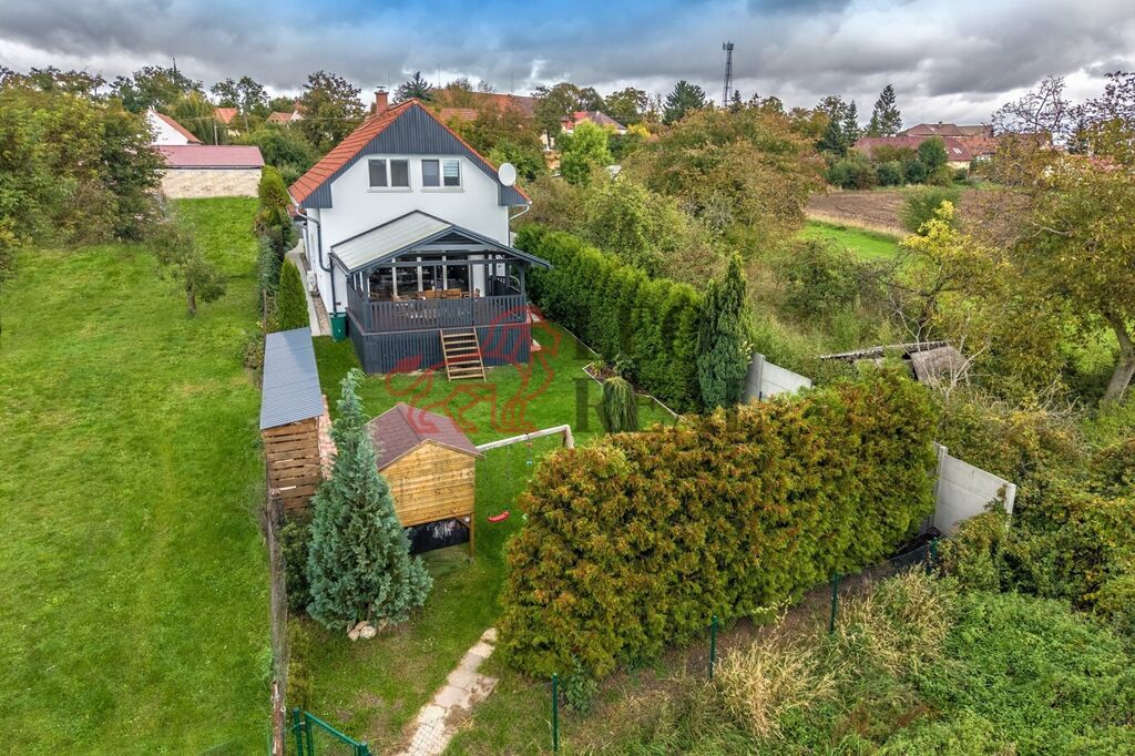 Nabízíme prodej mimořádného rodinného domu o dispozici 4+kk, s prostornou dvougaráží, bazénem a celkovou podlahovou plochou přibližně 220 m2 na udržovaném pozemku o výměře 1230 m2. Nemovitost vyniká kvalitním zpracováním a promyšleným dispozičním řešením s důrazem na moderní styl bydlení. Interiér v přízemí nabízí velkorysý obytný prostor s krbem, kuchyňským koutem, jídelnou a přímým vstupem na terasu, a první koupelnu s toaletou. V patře pak naleznete klidovou zónu; 3 ložnice a další koupelnu, tenokrát s vanou, a wc. Nad patrem je pochozí půda. V celém domě jsou důmyslně využity úložné prostory formou vestavných skříní.