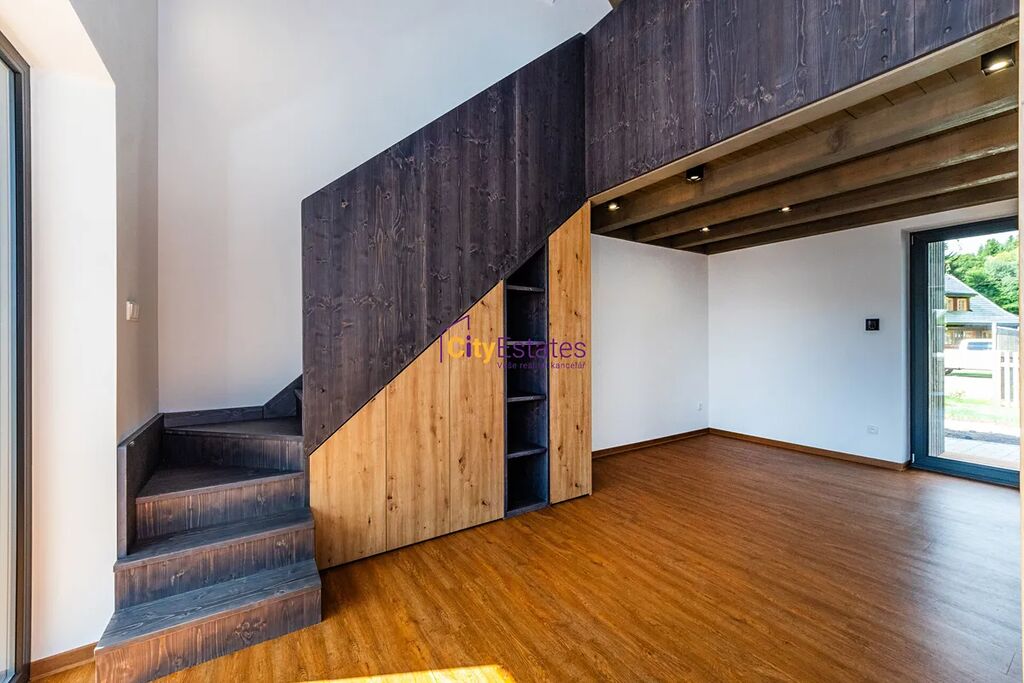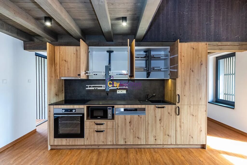 Do bytu, který je ve 2 podlaží domu, vstoupítešatnou, ze které vejdete do hlavního obývacího prostoru s kuchyňským koutem nebo do koupelny s toaletou. Na obývací pokoj navazuje lodžie. Přízemí je o výměře 30m2, v patře je galerie 16m2.