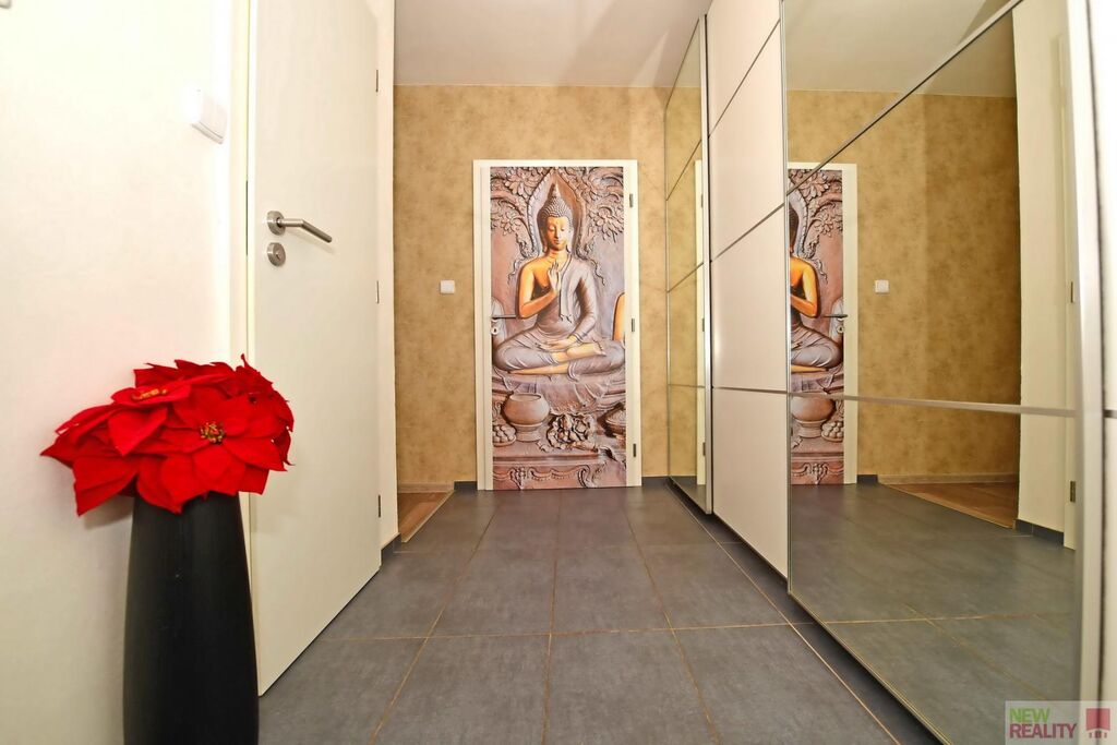 Po vstupu do bytu vás uvítá prostorná předsíň s velkou šatní skříní, kde můžete uložit všechny své oblečení a další věci. Dále se dostanete do koupelny, která je vybavena moderním sprchovým koutem a samostatnou toaletou. Obě tyto místnosti mají vlastní vstupy do pokojů, což zajišťuje soukromí pro každého obyvatele.