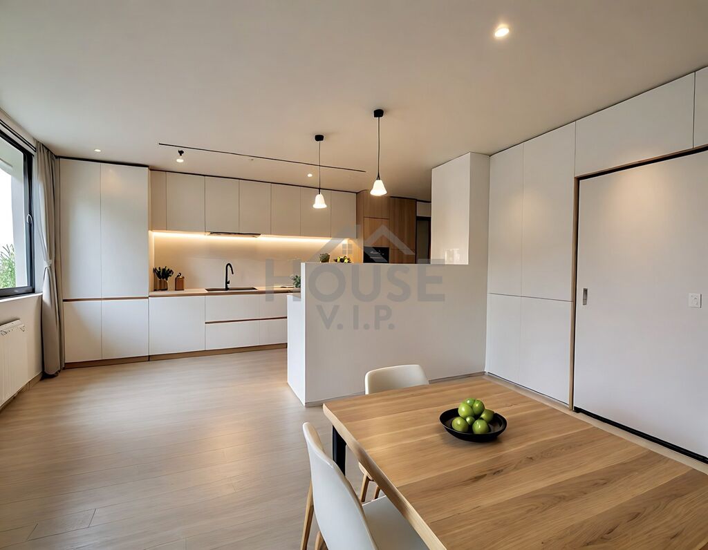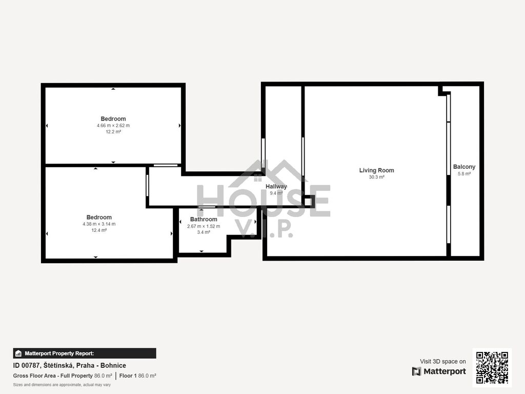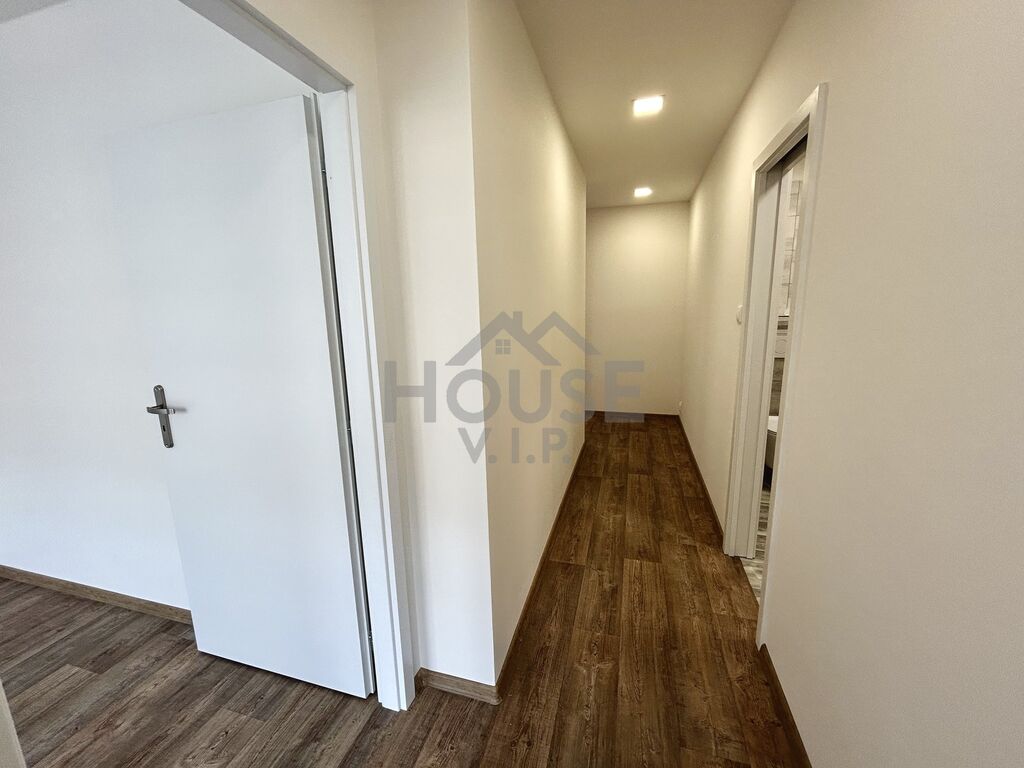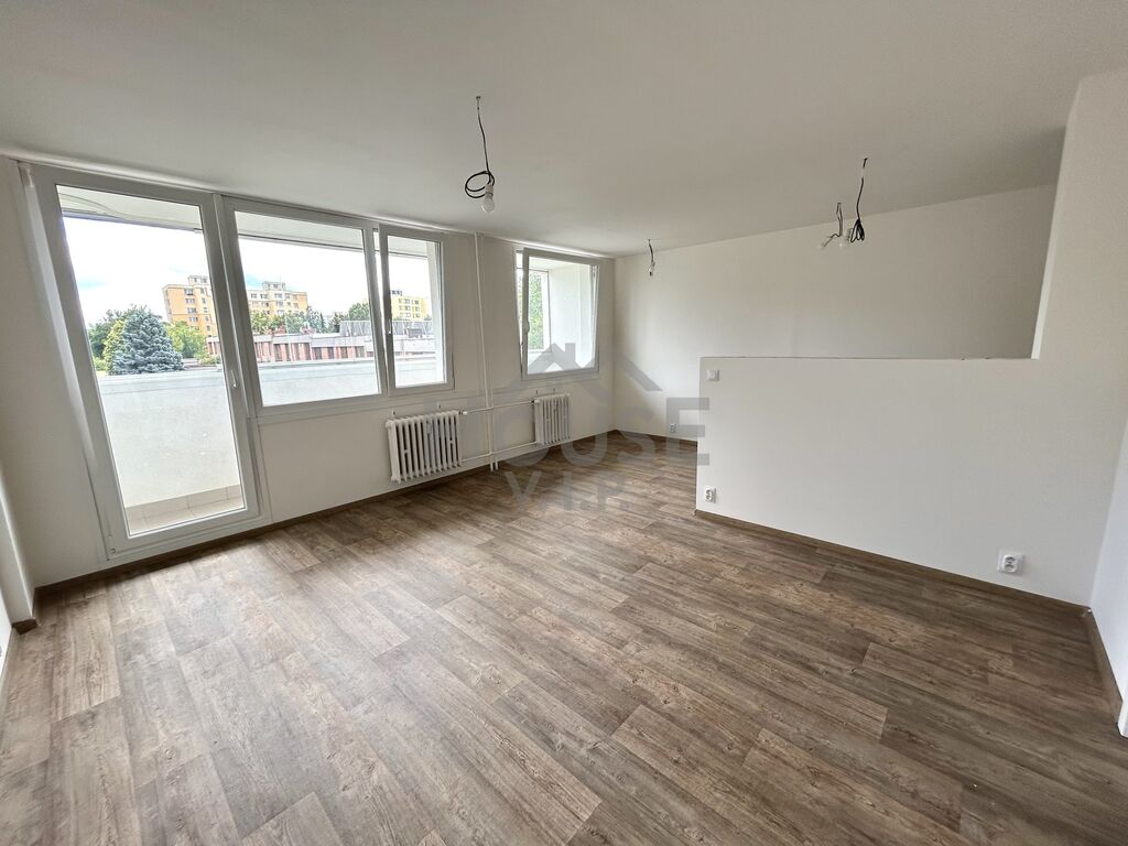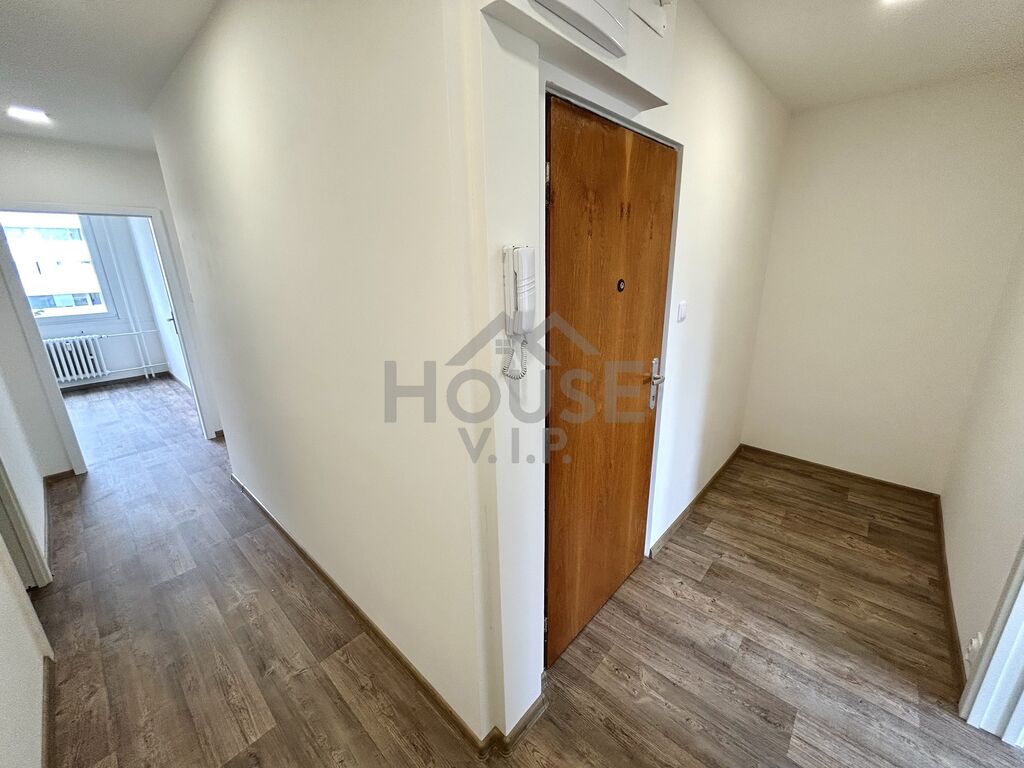 Byt prošel kompletní a kvalitní rekonstrukcí – nové rozvody elektřiny i vody, modernizovaná koupelna, podlahy i interiérové dveře. Dispozice bytu je praktická: centrální chodba 8,95 m², obývací pokoj s kuchyní 29,43 m² se vstupem na lodžii, dvě neprůchozí ložnice 12,4 m² a 12,17 m², koupelna s toaletou 3,23 m².