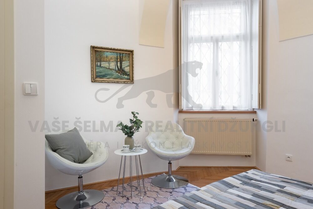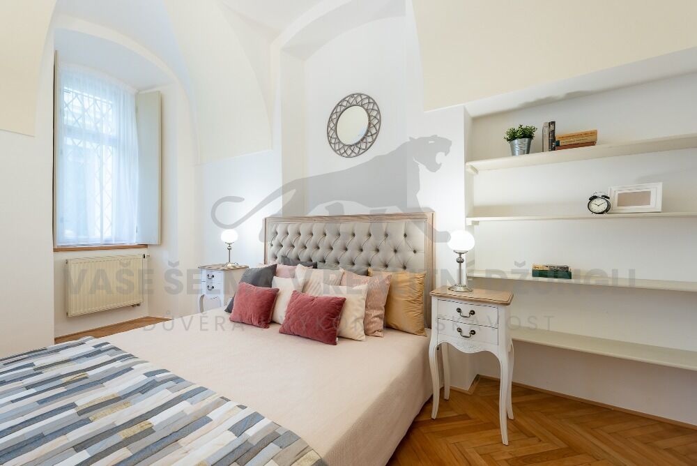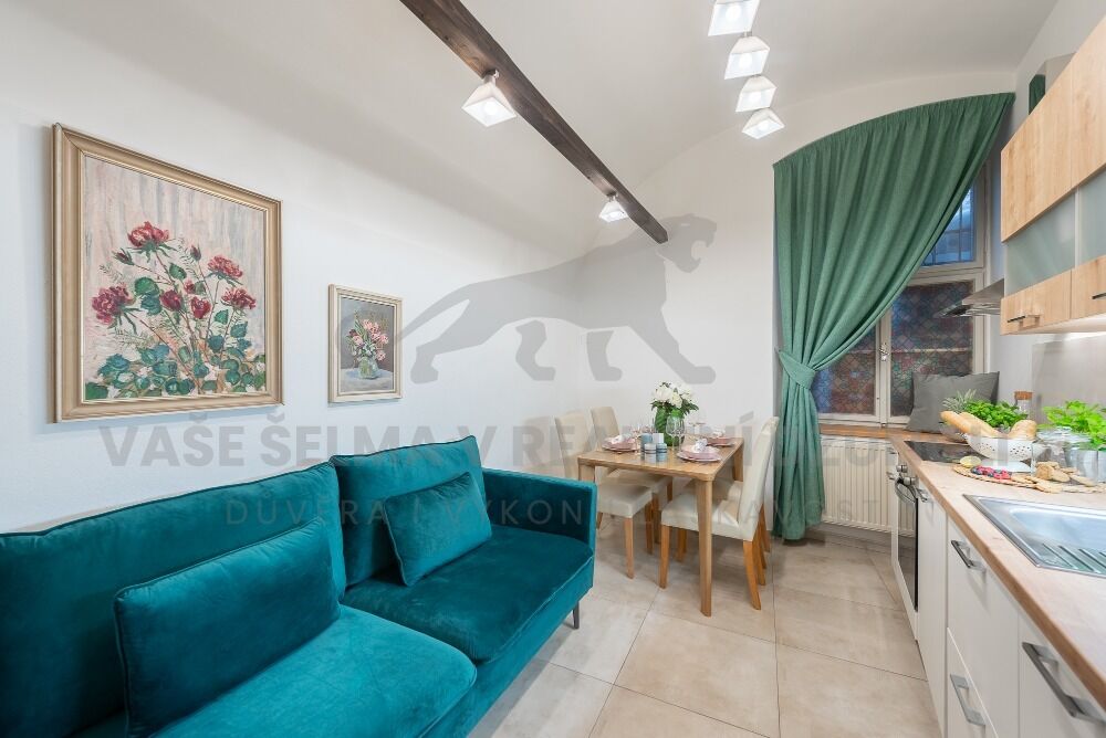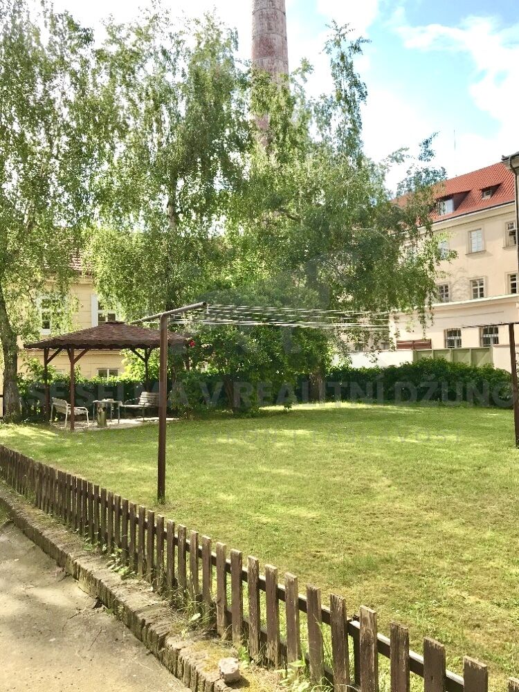 Náprstkova ulice, byt má cca 38m2 a je v přízemí v uzavřeném dvoře se zahradou - přístupný je ze společné chodby s vedlejším bytem o dispozici 3+kk.