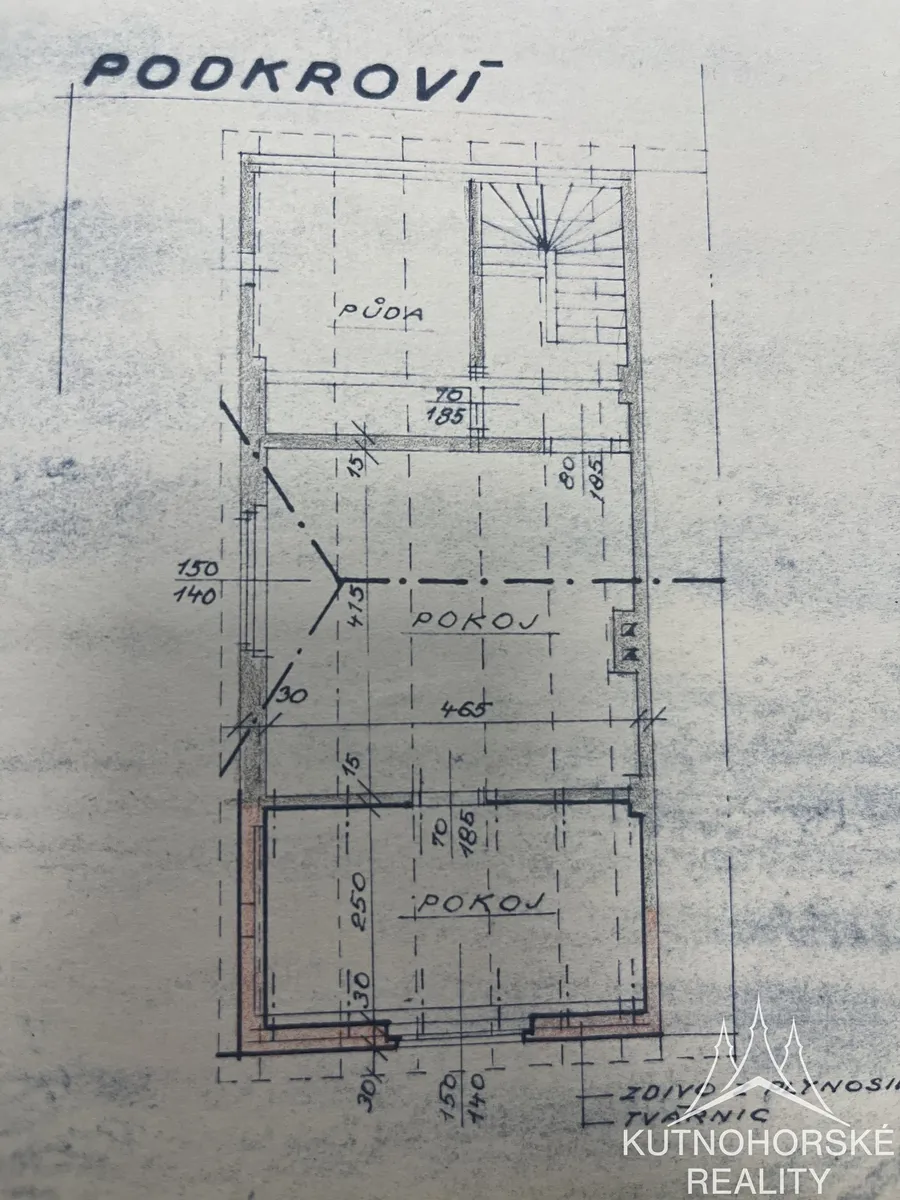 V patře jsou dva průchozí pokoje a půda. Plánky dispozice najdete mezi fotografiemi v inzerátu.