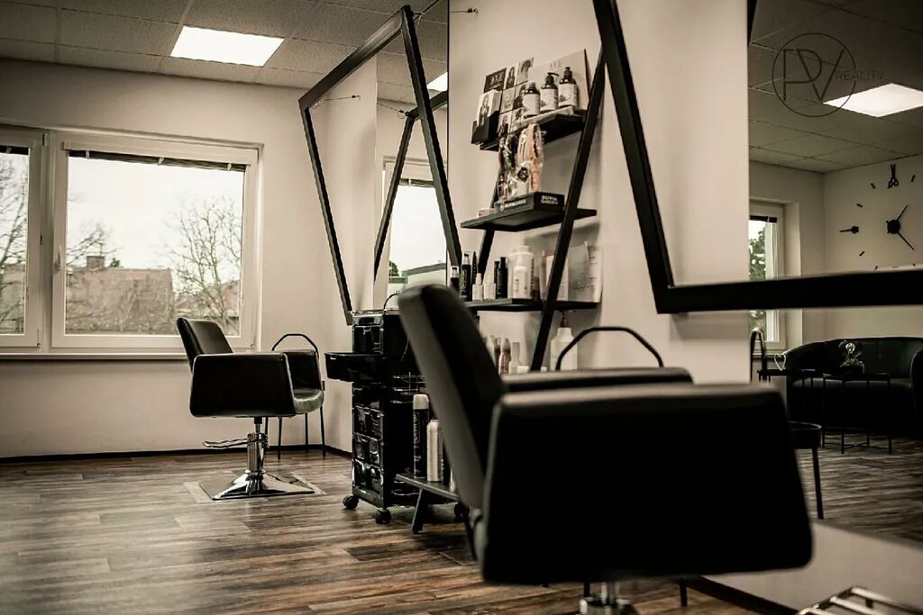 Součástí přenechání salonu je jeho kompletní vybavení – tři křesla, dva mycí boxy, klimazon, recepce, lednice, televize, vestavná skříň, plně vybavená pracovní kuchyň i šatna pro personál. V celém prostoru jsou nové podlahy, nainstalovaná klimatizace a interiér je celkově navržen ve stylu, který působí velmi elegantně. Velká okna propouštějí dostatek denního světla, přírodní tóny vytvářejí příjemnou atmosféru a stylové prvky dodávají salonu jedinečný charakter.