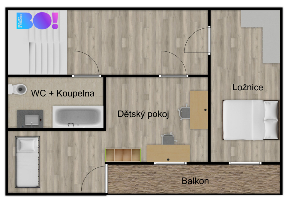 Dispozice 3+kk s technickou místností a dvěma koupelnami nabízí komfortní a praktické bydlení. Součástí je také vybavená kuchyň připravená k okamžitému užívání.
