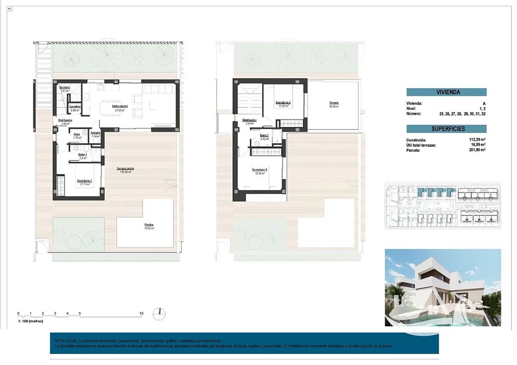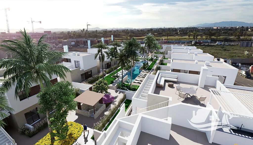 V srdci Costa Cálida, v prestižní lokalitě Los Alcázares, se nachází tento nový rezidenční komplex, který nabízí kombinaci moderního designu, komfortu a výjimečné polohy jen 900 metrů od písečných pláží Mar Menor. Tato vila o dispozici 4+kk poskytuje dvě koupelny, celkovou obytnou plochu 112 m², soukromý pozemek 201 m² a útulnou terasu 16 m², která je ideální pro relaxaci, posezení s přáteli nebo rodinné chvíle pod středomořským sluncem.