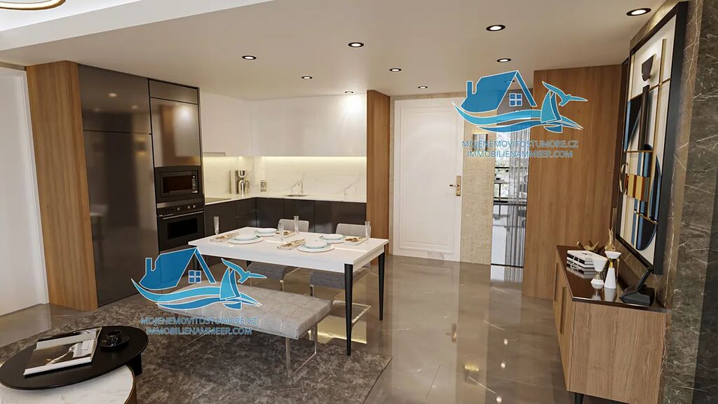 Plán splátek je na dva až tři roky bez navýšení. V ceně: klimatizace VRV, luxusní vybavení v koupelně Hansgrohe, luxusní kuchyňská linka a další. Předání podle budov do 1 roku, poslední budovy do 2 let.