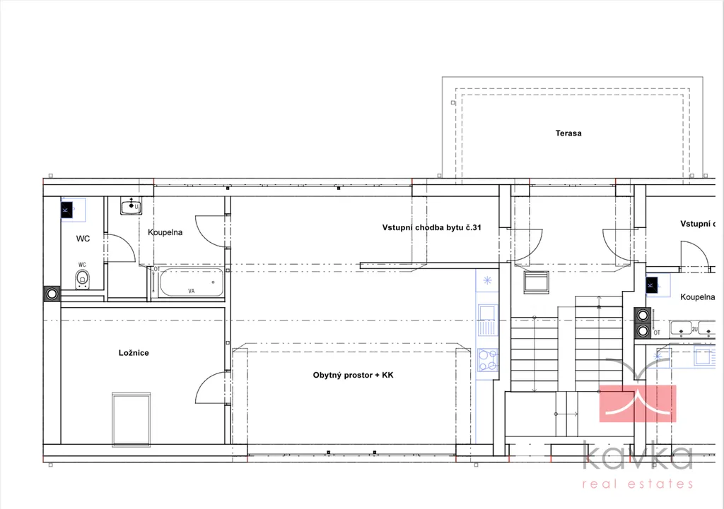 KAVKA REAL ESTATES Vám exkluzivně zprostředkují k pronájmu nový byt o dispozici 2+KK, užitné ploše 74,53 m² v centru města Humpolec. Byt se nachází v 3.NP třípodlažního nově realizovaného bytového domu o 6-ti bytech a je bez výtahu. U realizace tohoto objektu je kladený důraz na moderní a pohodlné bydlení v centru města Humpolec. Dispoziční členění: vstupní chodba, koupelna (vana), samostatné WC, kuchyň + obývací pokoj, pokoj. Součástí bytu je společná terasa (6,87 m2) s nádherným výhledem do okolí a sklepní kóje v suterénu bytového domu. Dále je zde možnost pronájmu venkovního parkovacího stání. Vytápění a ohřev vody je řešeno kondenzačním plynovým kotlem (podlahové vytápění) v kuchyni je ohřev vody řešen přes průtokový ohřívač. Nízké provozní náklady. Velmi dobrá lokalita. Kolaudace 2025. Veškerá občanská vybavenost nedaleko bytu. V případě zájmu o více informací či prohlídku kontaktujte makléře společnosti.