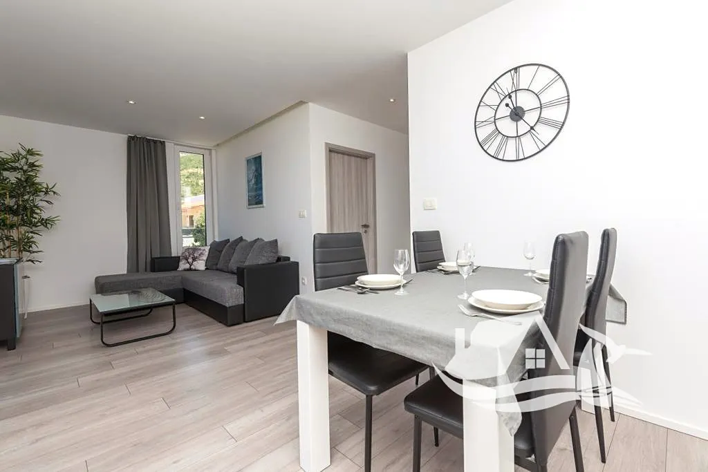 Tento elegantní apartmánový dům se dvěma samostatnými jednotkami a velkým vyhřívaným bazénem nabízí vše, co potřebujete pro relax i výhodnou investici. Každý apartmán má dvě prostorné ložnice, koupelnu s pračkou a sprchovým koutem, moderní kuchyni spojenou s obývacím pokojem a venkovní terasu. Interiéry jsou zařízené v moderním stylu s důrazem na funkčnost, čisté linie a pohodlí. Oba apartmány se prodávají kompletně vybavené – připravené k okamžitému užívání nebo pronájmu.