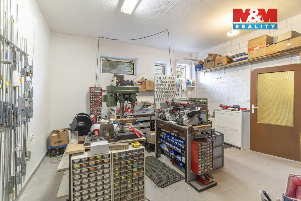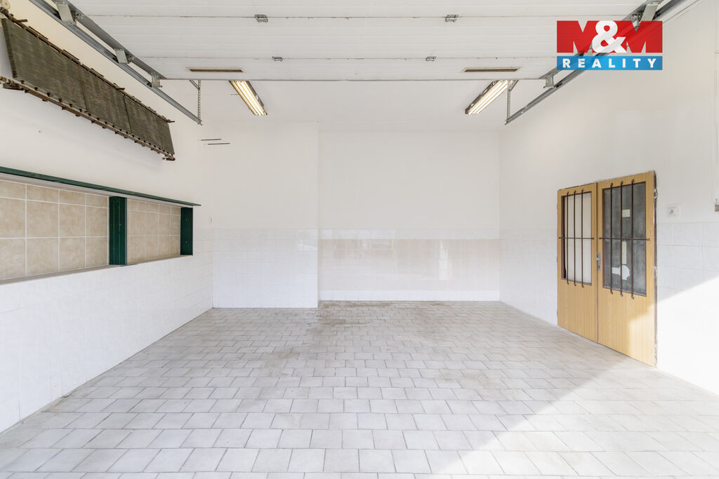 V suterénu se nachází prostorný sklep s okny, vhodný pro skladové či technické využití. Přízemí nabízí garáž, sklad s toaletou a zavedenou hospodu, jejíž nájemce má zájem pokračovat v provozu. V prvním patře se nachází světlá kancelář s kuchyňkou.