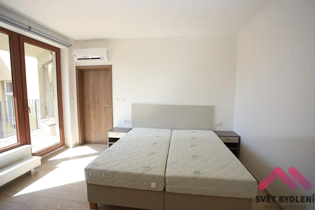 Naše společnost si Vám dovoluje nabídnout luxusní byt, který se nachází v 5.patře s výtahem právě novostavby z roku 2020 projektu Residence Grébovka která je provedena ve vysokém standartu. Byt je kompletně vybaven moderním nábytkem (viz. foto) dále je k dispozici kuchyňská linka s vestavěnými spotřebiči zn. Siemens (lednička, myčka, sporák) a vestavěné skříně v předsíni. V koupelně je umístěna pračka. Byt je vybaven automatickou klimatizací! K bytu náleží sklepní kóje, která je umístěna v suterénu domu a dále je možné si pronajmout garážové stání za příplatek 1.800Kč (upozorňujeme zájemce o garáž, že se jedná o garážové stání se zakladačem takže se do něj nevejdou vyšší typy aut SUV apod..).