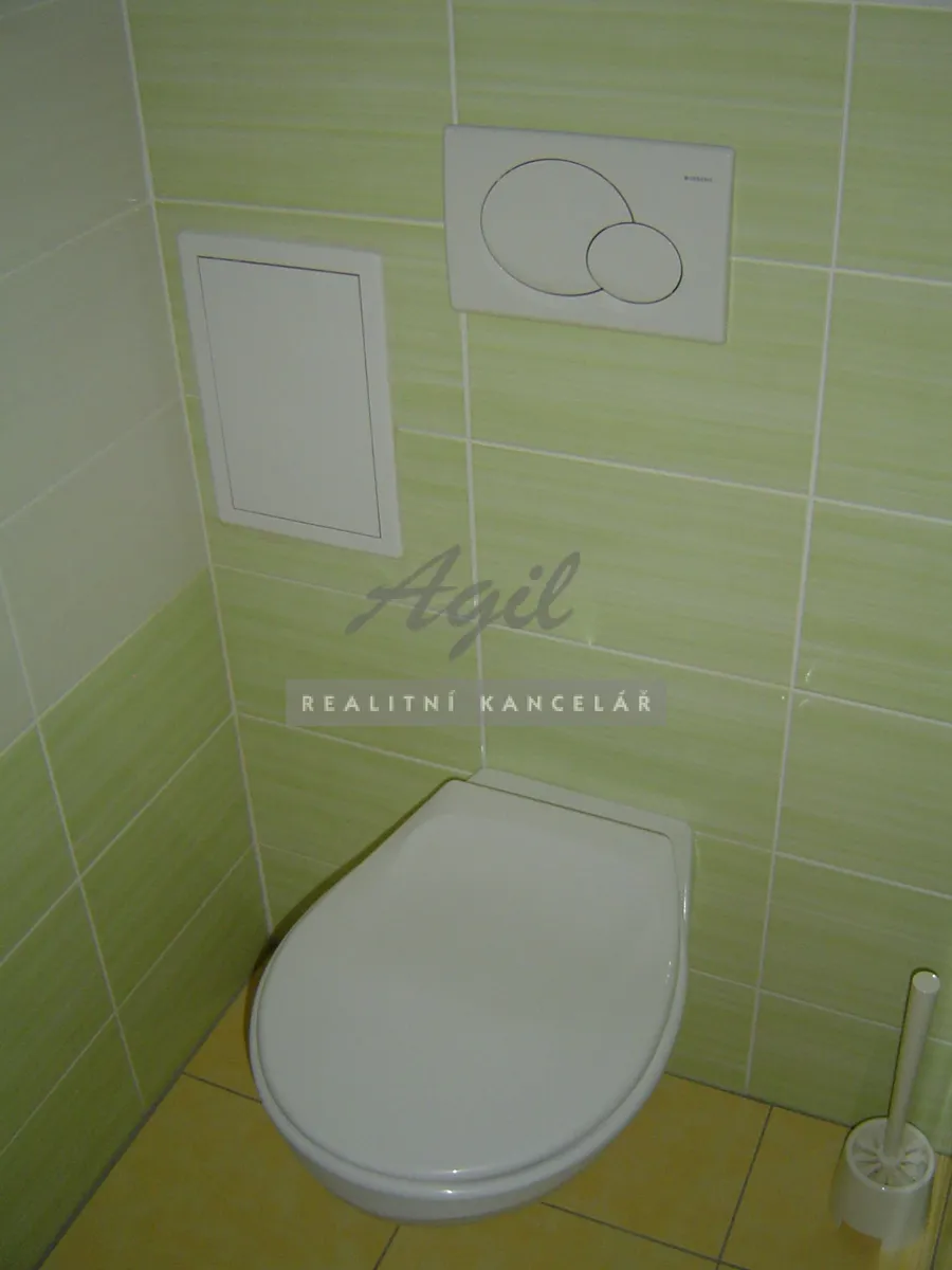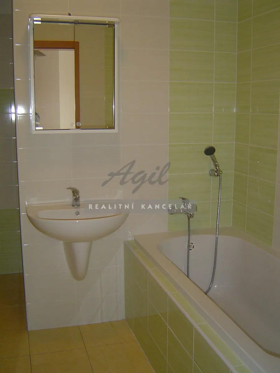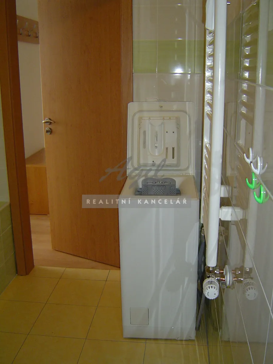 Koupelna – umyvadlo, nástěnná zrcadlo a osvětlením, vana,, WC, elektrický žebřík, přípojka na pračku, pračka.