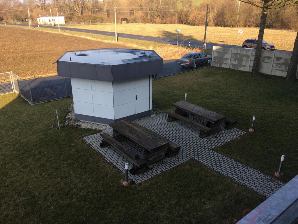 Na pozemku zahradní domek pro uskladnění kol, posezení, možnost grilování.
