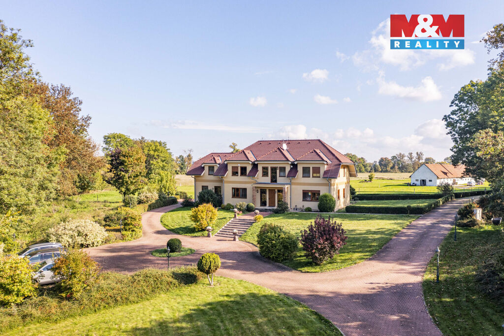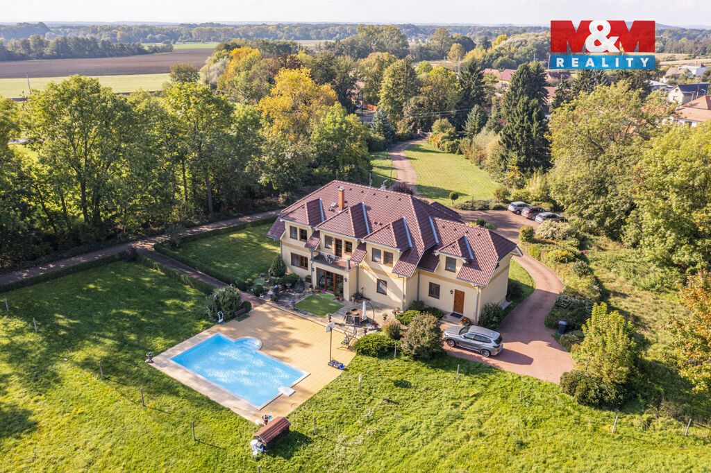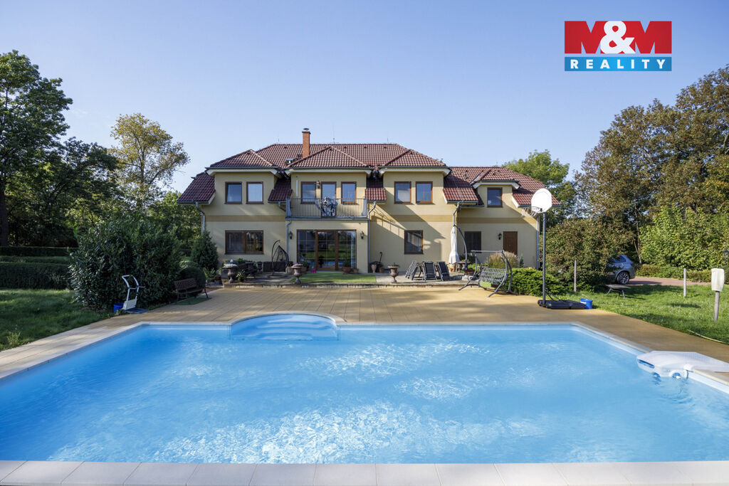 Prodej zatepleného rodinného domu se dvěma balkony, terasou a vyhřívaným bazénem 10x5m v historicky známé části obce Kostomlaty nad Labem - Rozkoš. Podlahová plocha RD je 370m2. Plocha pozemku — cca 6.500 m2. Parcela je součástí plochy pozemků ve vlastnictví majitele určených dle ÚP k zastavení o velikosti cca 10.000 m2. Přípojky na veřejný vodovod a kanalizaci jsou na hranici pozemku. Vrtaná studna (28m), EKO čistička odpadních vod. Ohřev teplé vody — elektrický kotel. Podlahové vytápění, krb. Protipožární zabezpečení, bezpečnostní systém. Venkovní rolety, dálkové ovládání brány. Cca 1.200m2 vydlážděné cesty s kruhovým objezdem, nově vyprojektovaná velká zahrada s vodopádem a jezírkem. Podél cest je nainstalováno venkovní osvětlení na dálkové ovládání. Dalším předmětem prodeje může být také stáj se 22 boxy pro dostihové koně a tréninkovou dráhou cca 800m pro dostihové klusácké koně. Celková plocha pozemků obou komplexů nemovitostí je cca 10 ha. Více informací v RK.