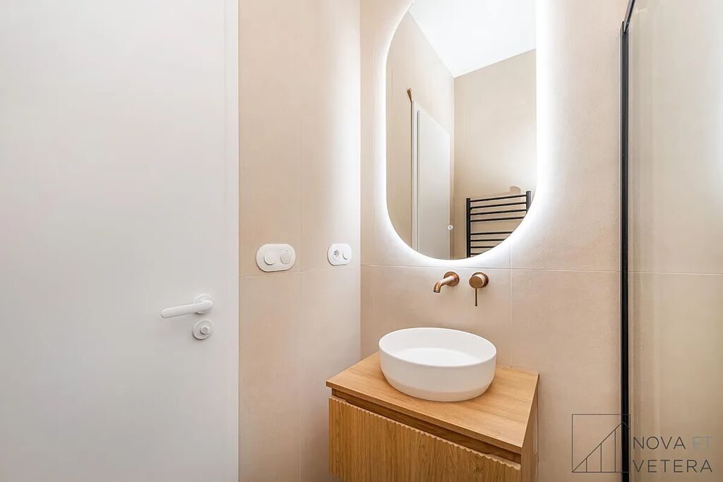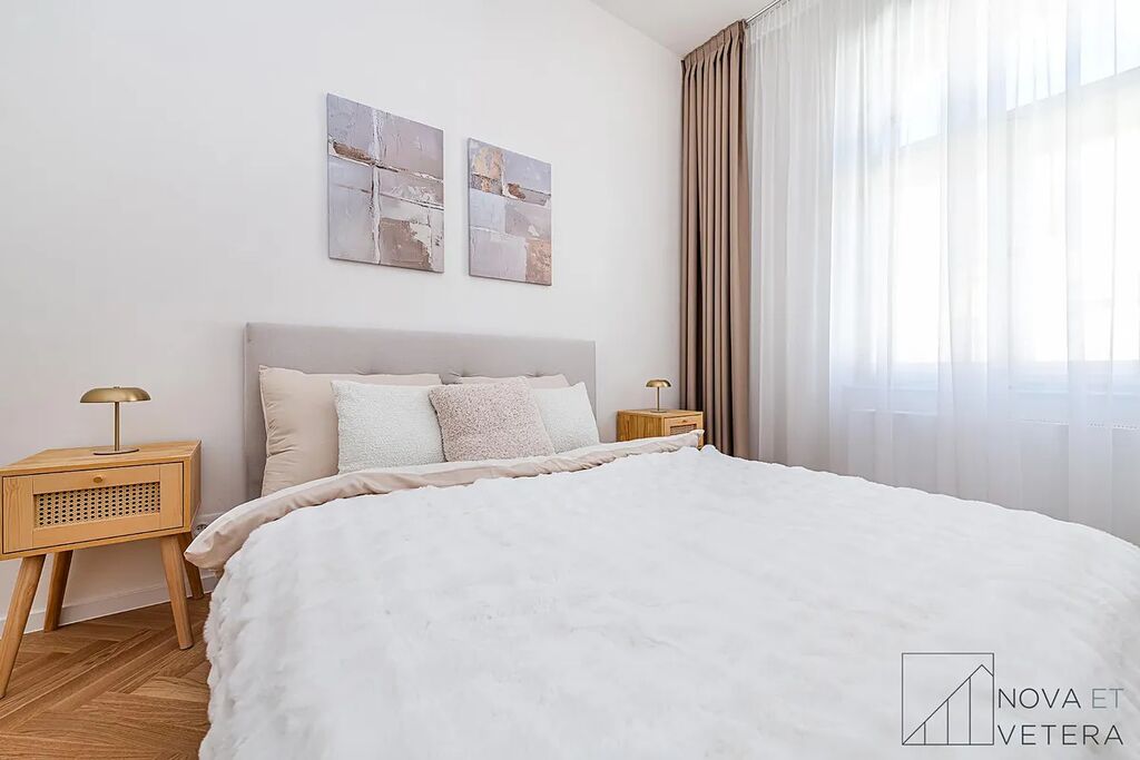 Vysoký standard kompletní rekonstrukce zahrnuje nové rozvody elektřiny, vody a odpadů. Dále rekonstrukce zahrnuje dřevěné parketové podlahy, kvalitní velkoformátové obklady a dlažbu od italského dodavatele MARAZZI. V koupelně a na toaletě naleznete sanitu značky GROHE. Moderní kuchyňská linka disponuje mimo jiné kvalitními spotřebiči značky BOSCH, kameninovou pracovní deskou na míru a zapuštěným granitovým dřezem.