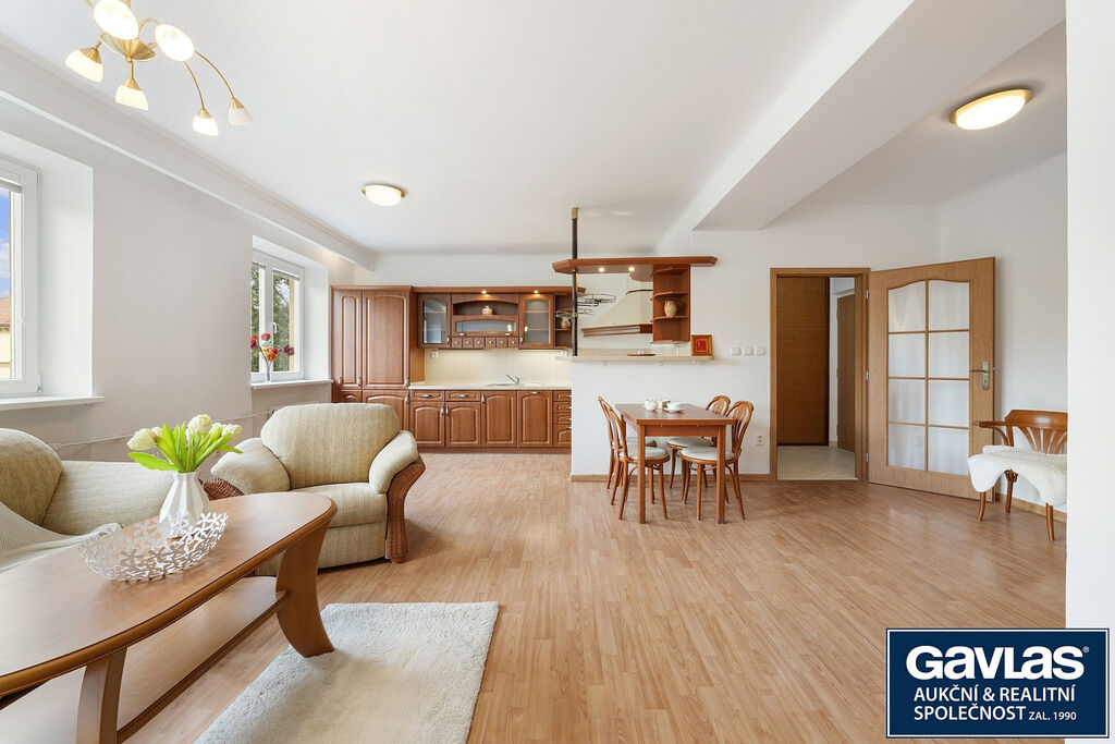 • Obývací pokoj s posezením propojený s kuchyňským a jídelním koutem