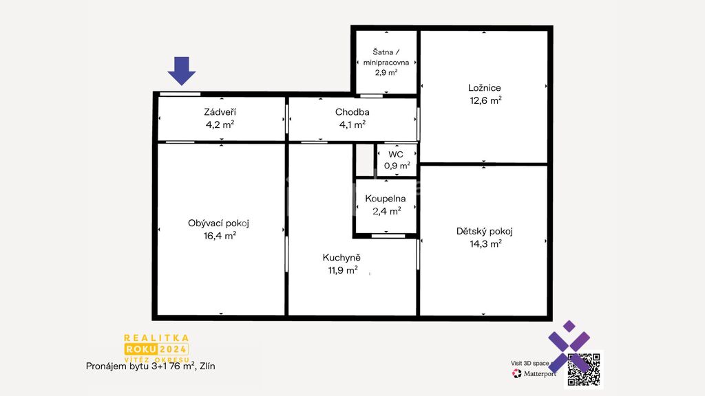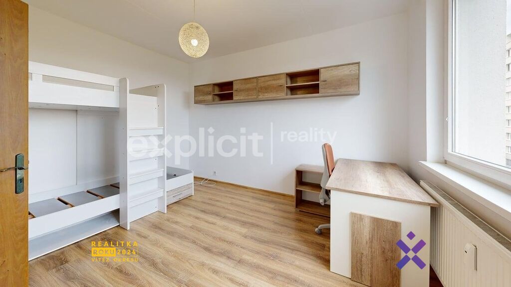 Nabízíme k pronájmu světlý a vzdušný byt 3+1 o celkové ploše 76 m² s prostorným balkonem, který se nachází v posledním, 8. patře panelového domu na adrese Kúty 1958, Zlín.