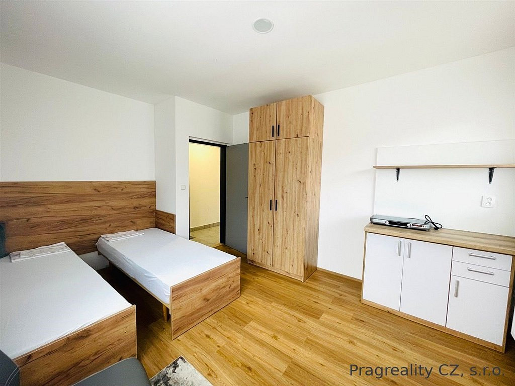 Exkluzivně nabízíme v nově zrenovovaném patře cihlového domu, 2 studia oddělené jednotky/pokoje, které sdílejí příslušenství. Budova se nachází v Roztokách u Prahy. Každý pokoj je vybaven, pro 1 a 2 osoby. Výborné spojení do Prahy, vlakem nebo MHD. Na patře je pro tyto jednotky plně vyhrazená a zařízená kuchyňská linka s lednicí, indukční vanou deskou, myčkou a el. troubou, dále samostatná koupelna se sprchovým koutem, umyvadlem se zrcadlovou galerií, pračkou, dalším WC s umyvadlem. Celé patro domu je po kompletní renovaci s dokončením 6/2025. Budova se nachází v pěší vzdálenosti od supermarketu Tesco, v okolí jsou cyklostezky a krásná příroda, autobusová zastávka Roztoky, U Rybníčku je kousek od domu (4min na vlakové nádraží, jezdí co 10min., na metro A Dejvická je za 17min, bus 340, 350, 954 /noční spoj. Jednotky jsou vhodné také pro studenty (ČVUT Dejvice, ČZU Suchdol), každá jednotka poskytuje soukromí v novém zařízení.
