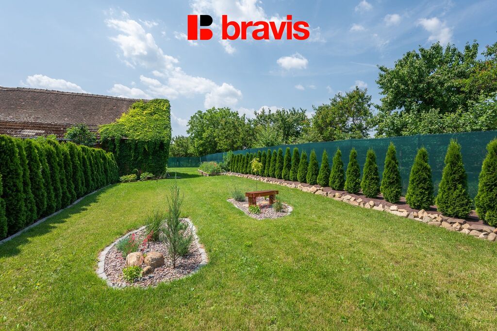 Součástí prodeje je pečlivě upravená, částečně vzrostlá zahrada a ovocný sad, jenž společně nabízejí dostatek soukromí i prostoru pro dětské hry, zahradničení nebo chov domácích zvířat. V zahradě je meruňkový sad a v dolní části obdělávané pole. Pozemek je ideální pro milovníky přírody i všechny, kdo touží po vlastním kousku zeleně.