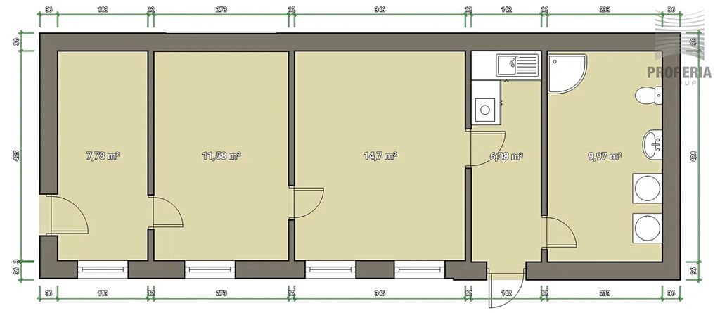 Všechny místnosti jsou průchozí. Orientační rozměry najdete v přiloženém půdorysu a plánku, které vám pomohou lépe si prostor představit.