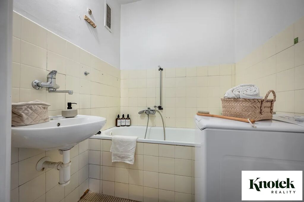 Koupelna a toaleta mají zděné jádro, což je ideální základ pro moderní úpravy dle vlastního vkusu.
