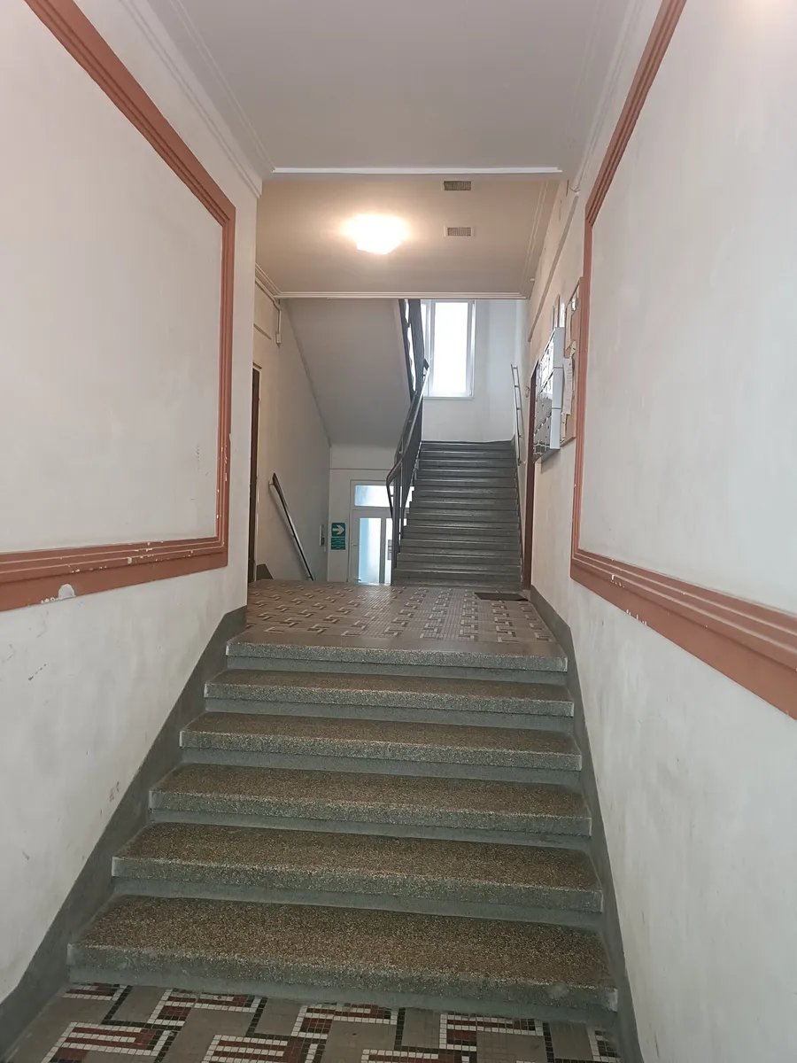 Byt je v přízemí domu, přesto dostatečně vysoko, aby chodci nerušili nájemníky. Je prosluněný, prostorný, s velmi příjemnou atmosférou. (Bohužel fotografování nepřálo počasí.)