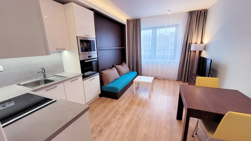 Nabízíme útulný byt č.602 o dispozici 1kk v 6.NP, kompletně zařízený se všemi elektrospotřebiči. Navíc moderní obývací sofa s integrovanou sklápěcí postelí Vám celý byt opticky výrazně zvětší. Součástí bytu je rovněž komfortní nepřímé LED osvětlení a zdravotní matrace! V koupelně vana i bidet a příjemné podlahové vytápění.